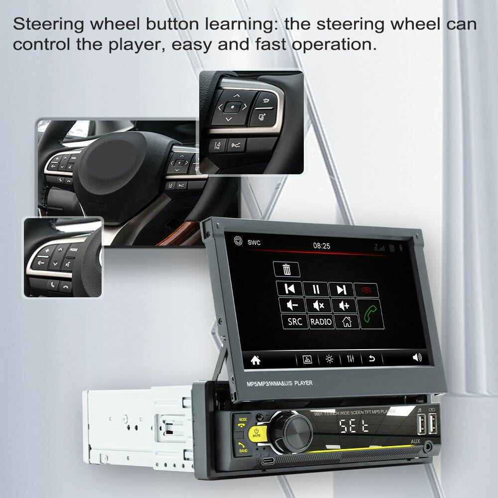 7-дюймовый выдвижной экран Автомобильный MP5 MP4 MP3-плеер BT 5.1 Автомобильный, интересное: