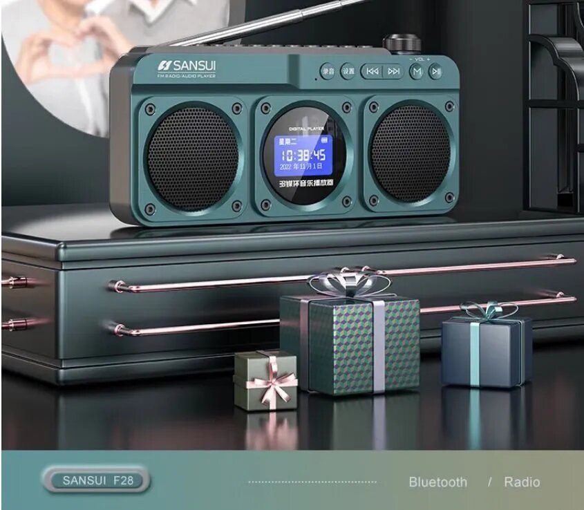 Магнитола F28-GRAY, USB/SD/MMC, FM, дипольная антенна, зеленый интересное: