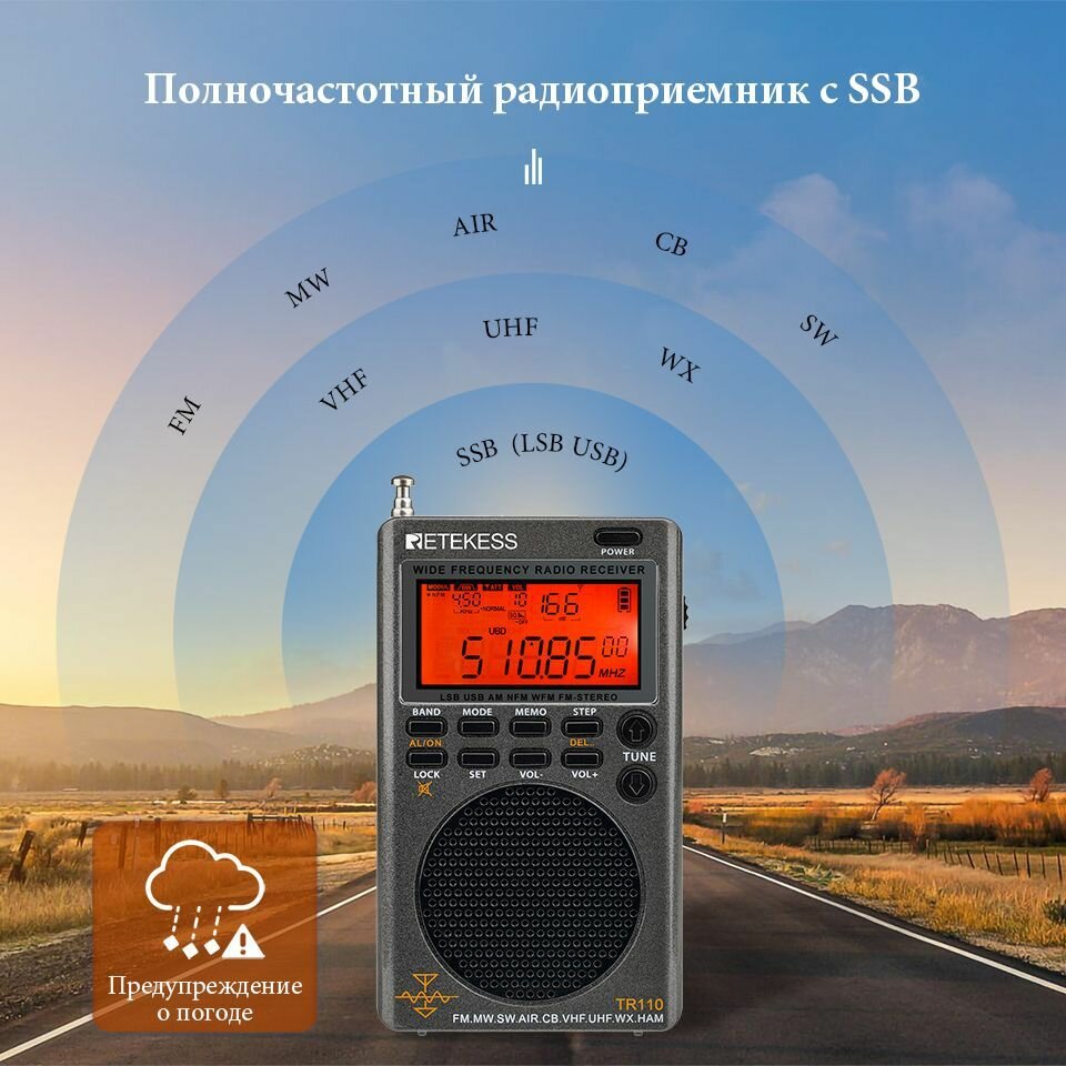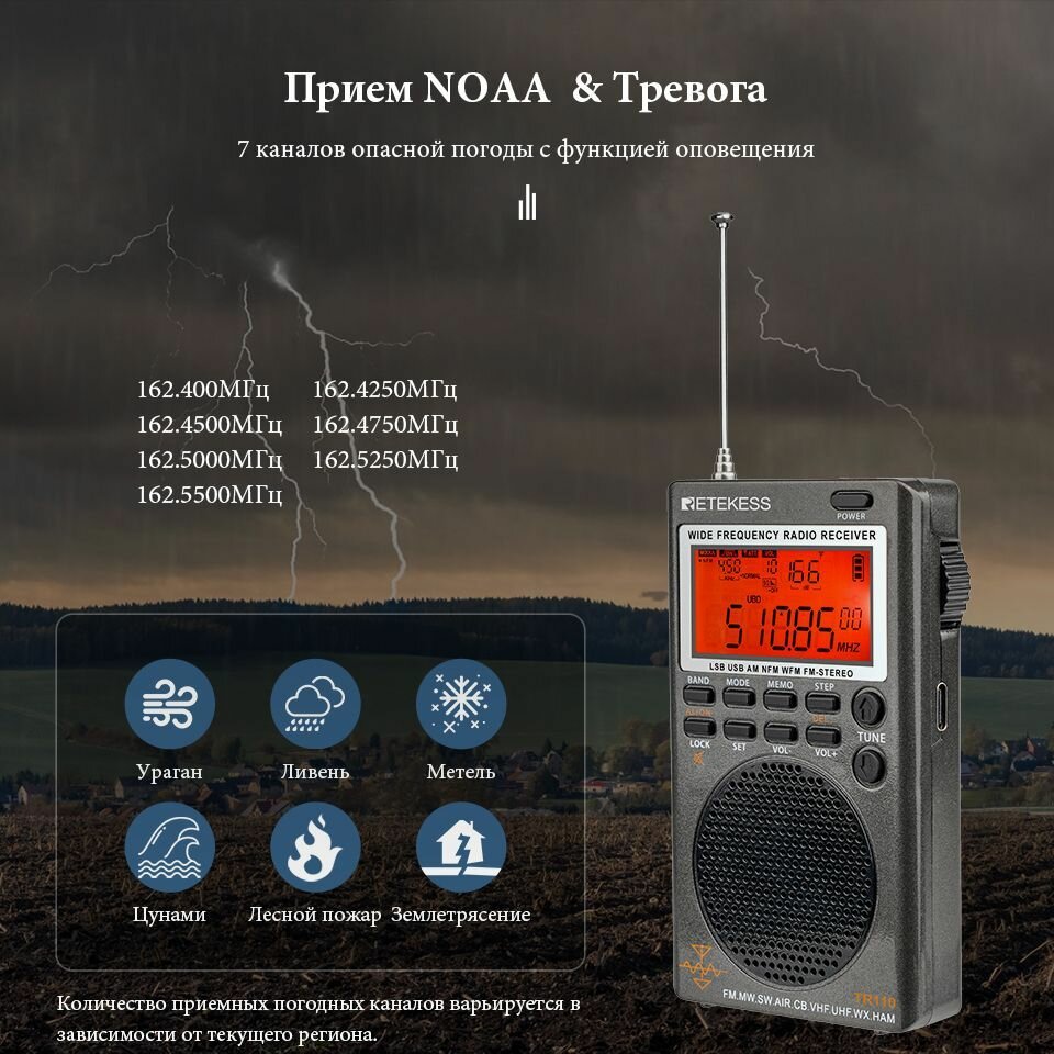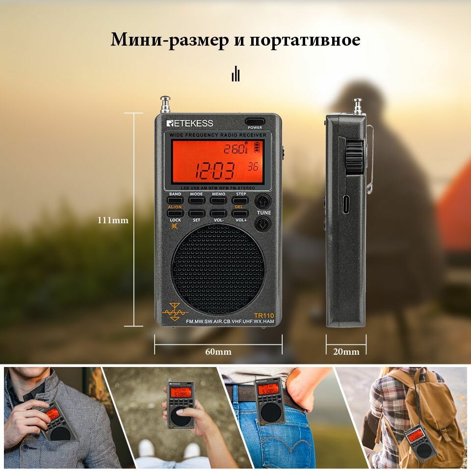 Портативный Карманный радиоприемник от сети и батареек Retekess TR110 AM/FM/SW/MW/AIR интересное: