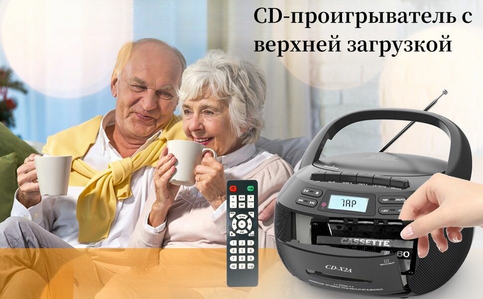 Кассетный проигрыватель с Bluetooth, USB, CD, MP3 , черное интересное: