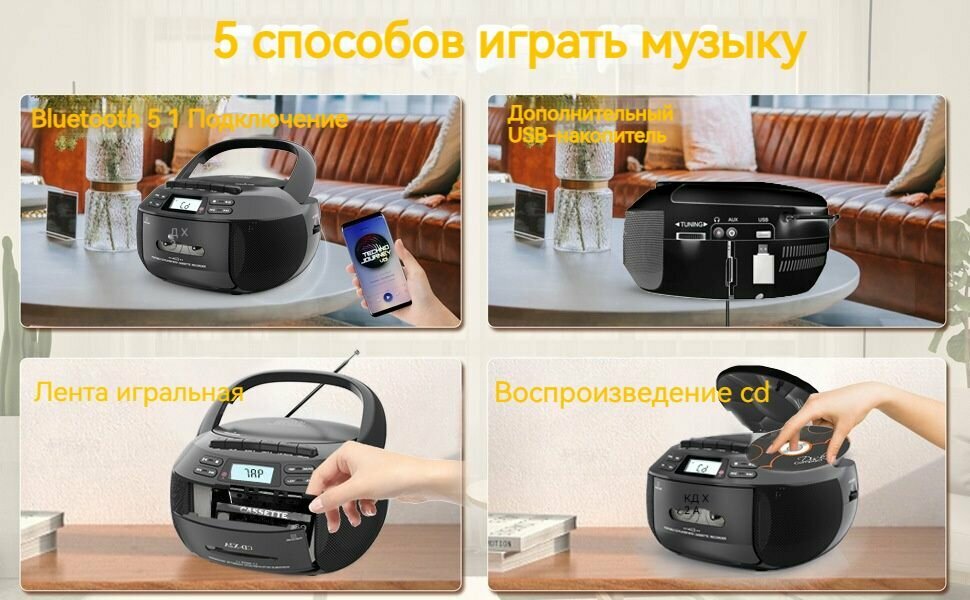 Магнитола U349, 2 элемента питания, разъемы 3.5мм, черный матовый интересное: