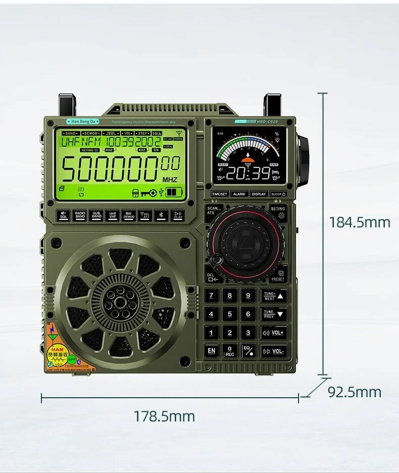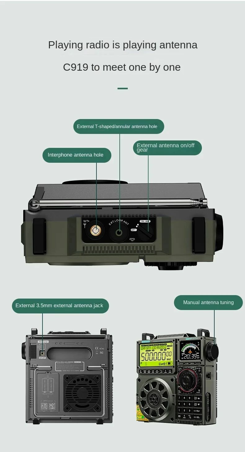 HRD-C919 Iron Grey (Ретро-стиль) Широкополосное радио MW SW, Полночастотный приемник Bluetooth / Воспроизведение музыки интересное:
