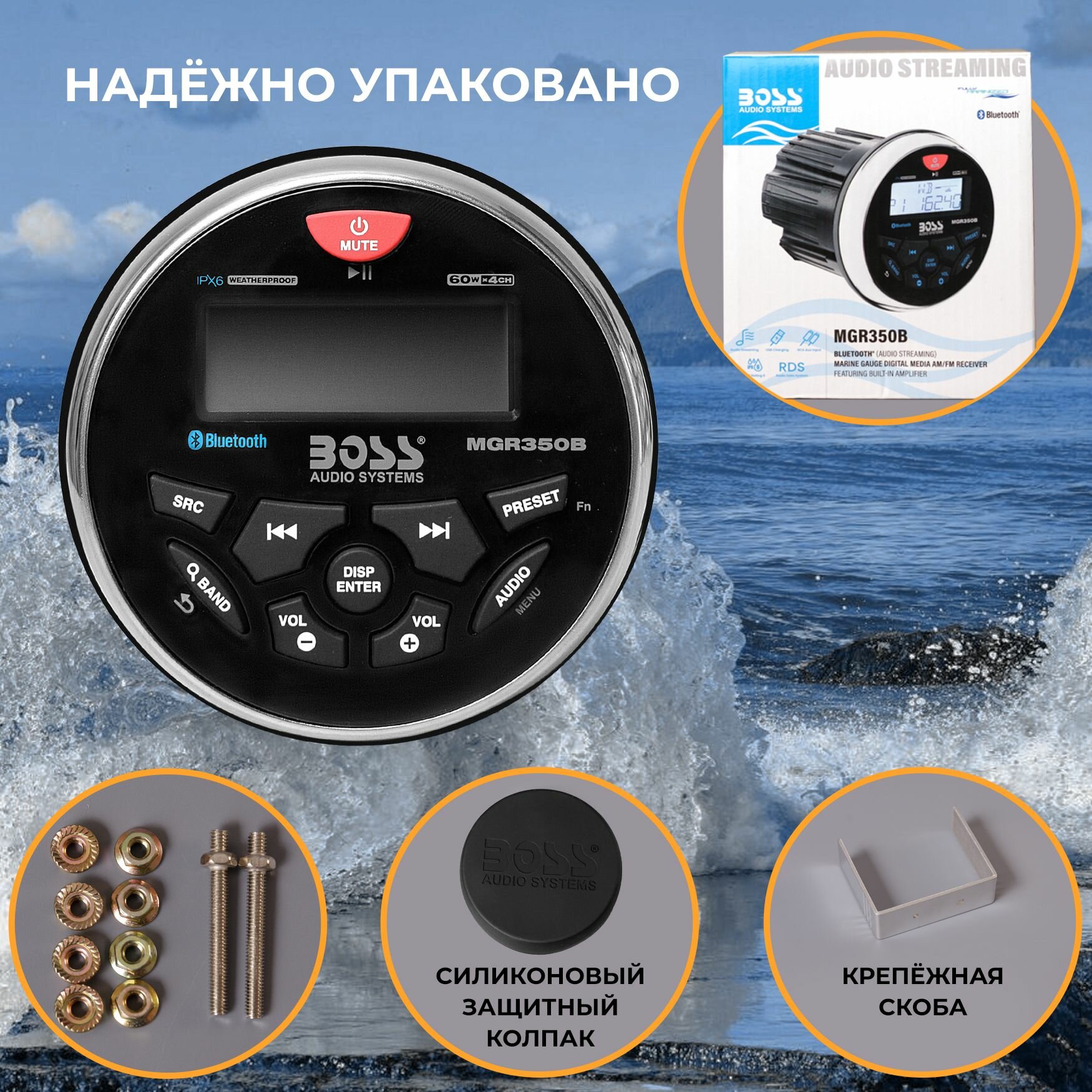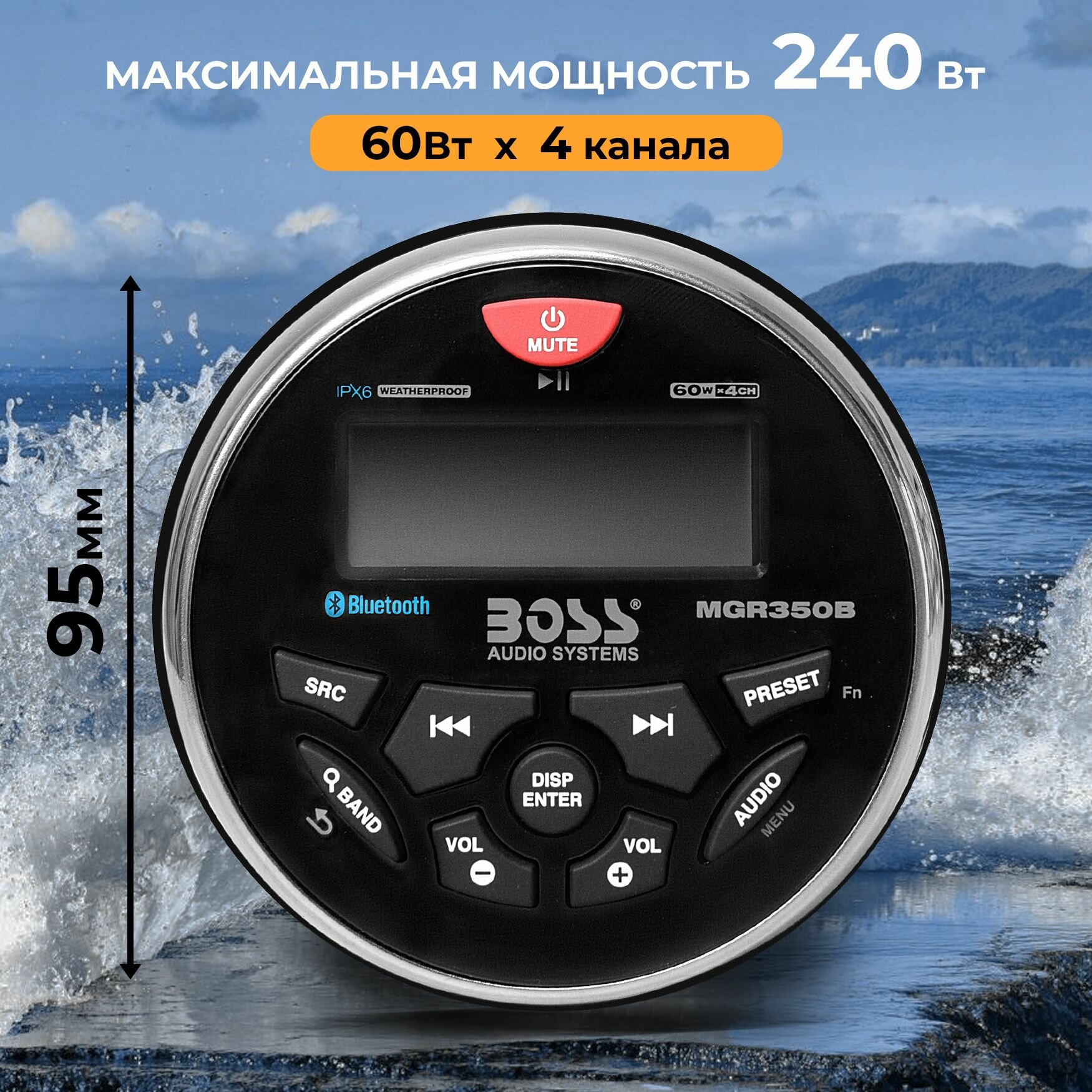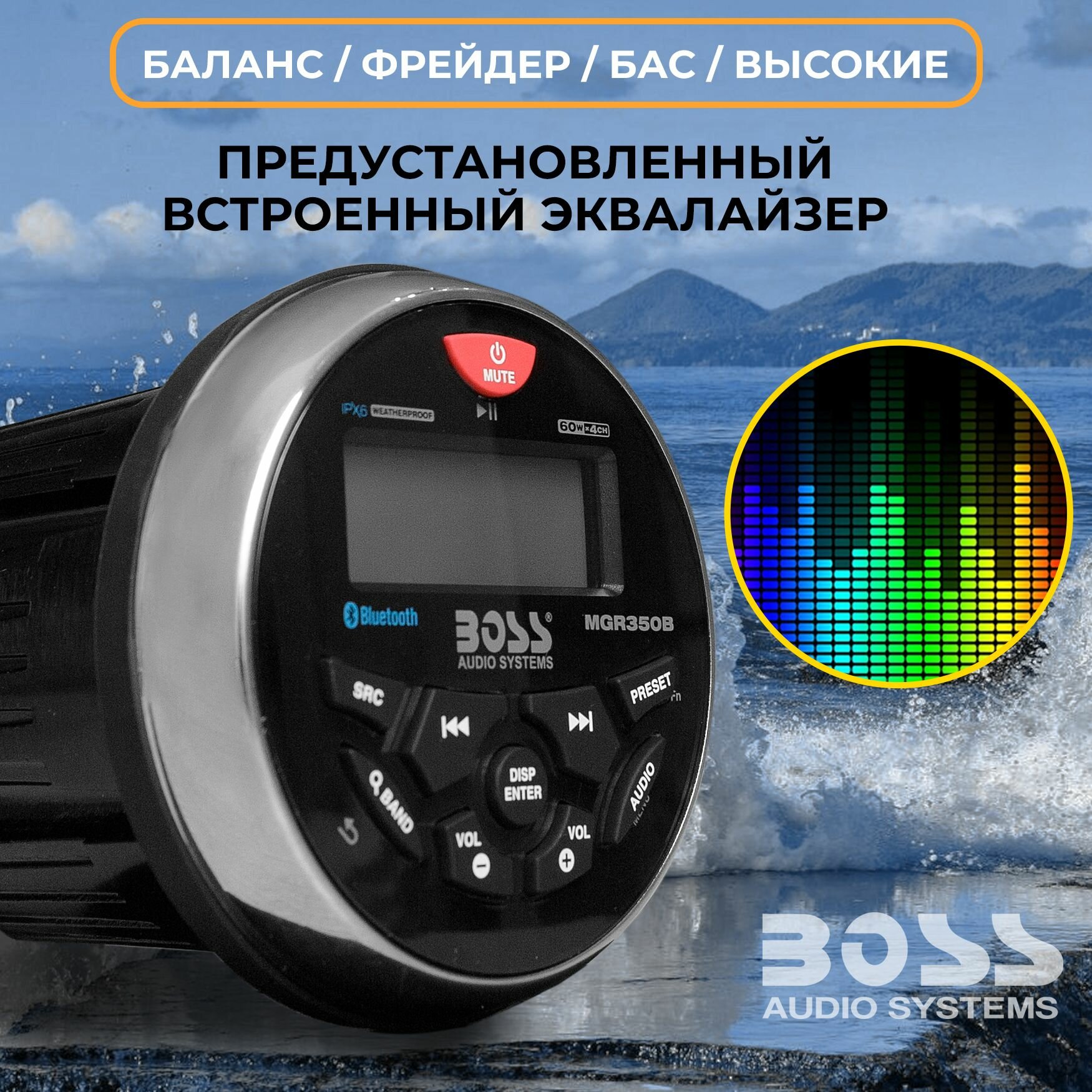 Влагозащищенное головное устройство Boss Audio Marine MGR350B, 60 Вт х4, для мотоцикла, квадроцикла, водного транспорта, магнитола BOSS AUDIO интересное: