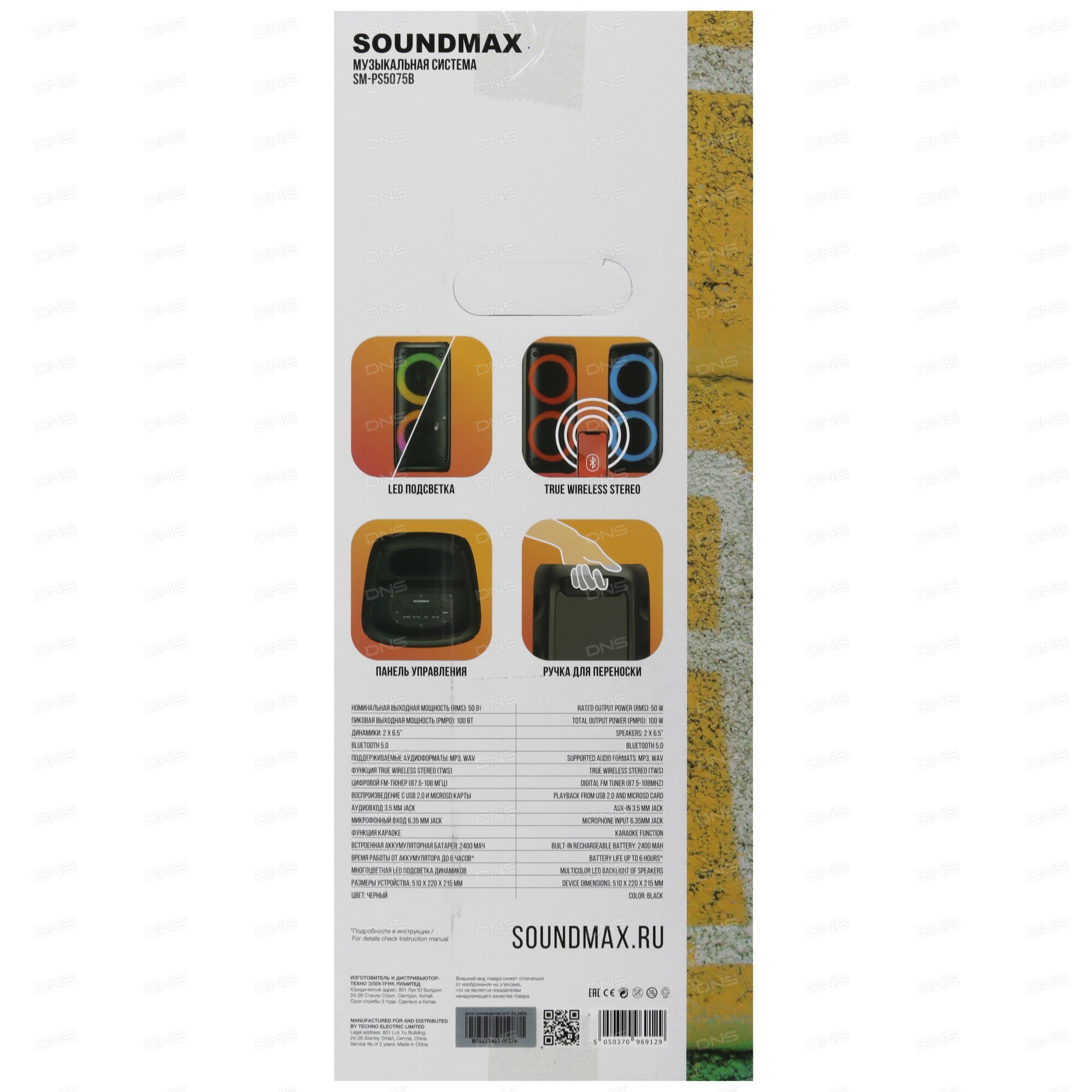 Портативная аудиосистема Soundmax SM-PS5075B, черный интересное: