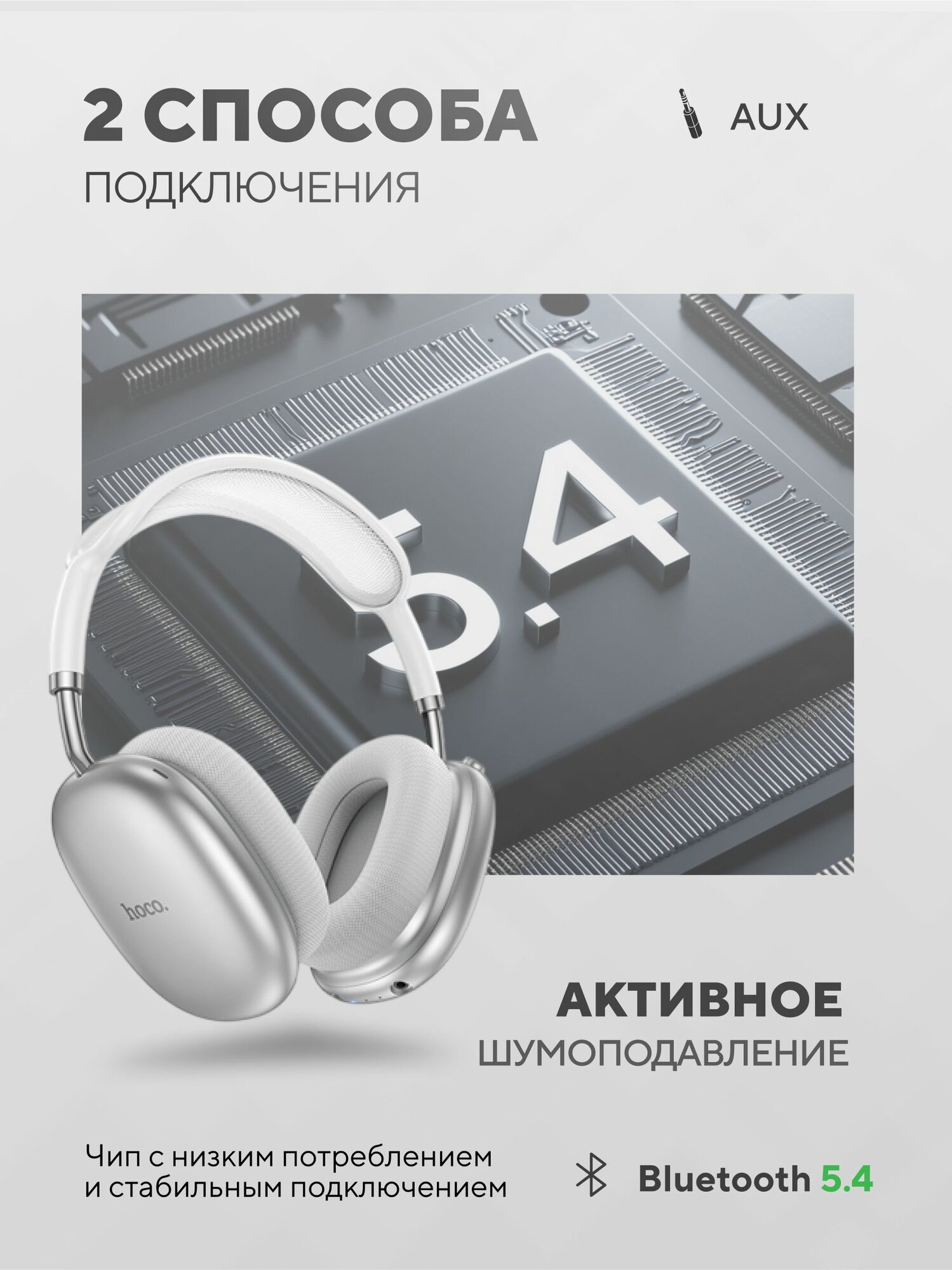 Купить HOCO 2025 Наушники беспроводные большие накладные W55 Plus с шумоподавлением, цвет Silver