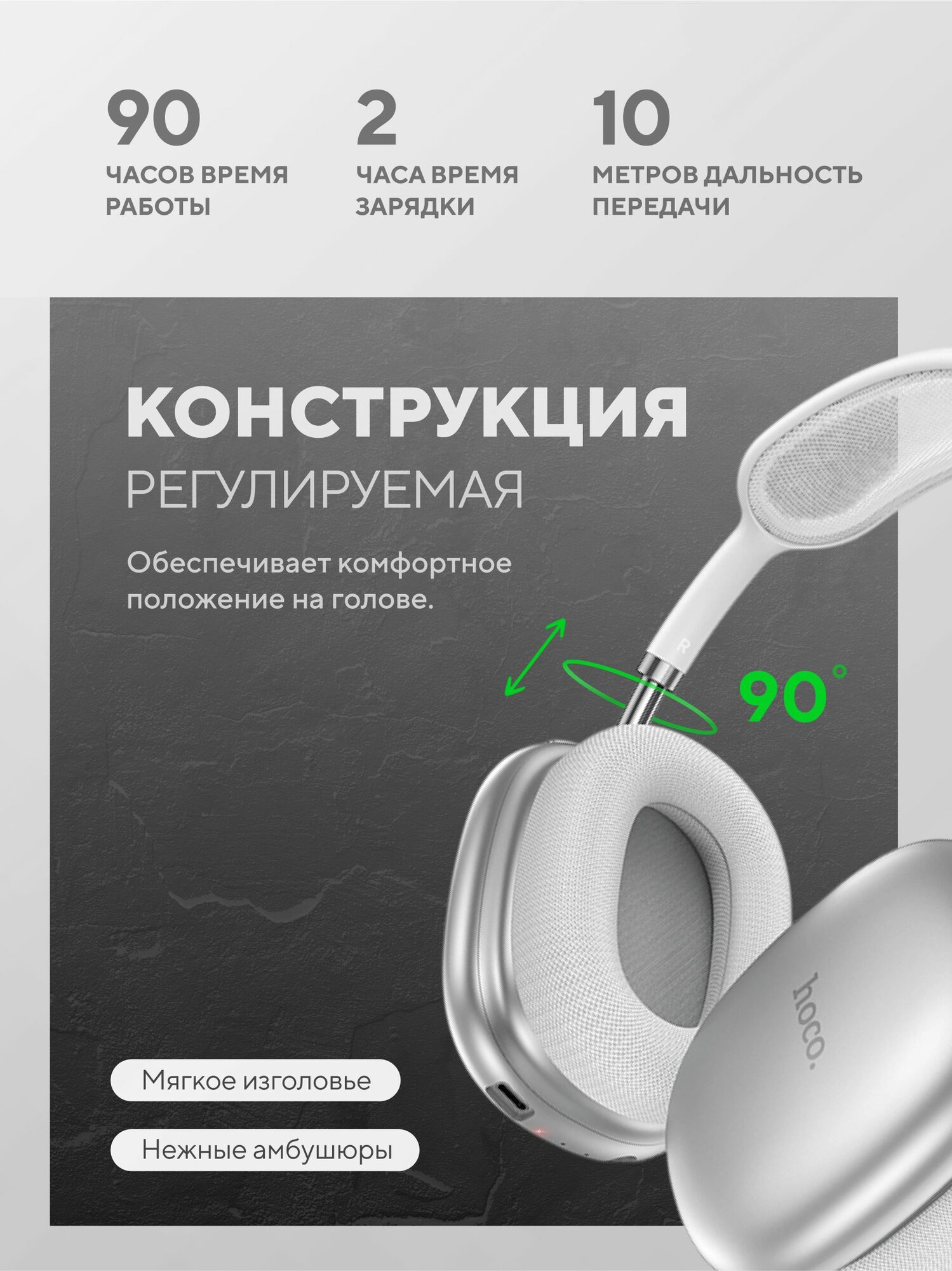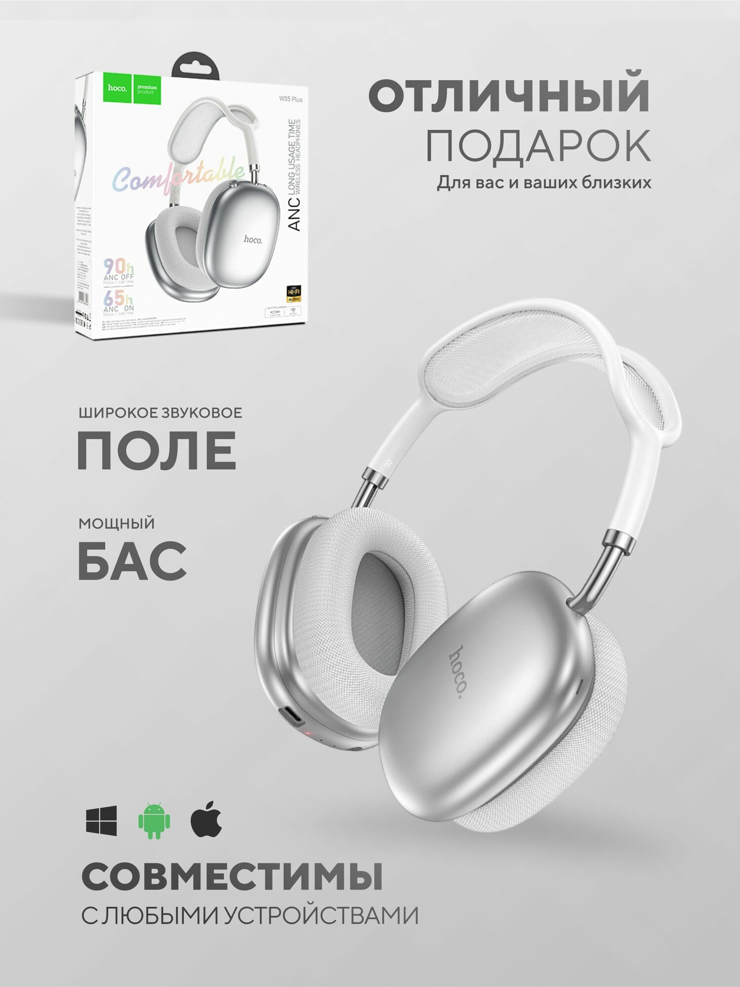 HOCO 2025 Наушники беспроводные большие накладные W55 Plus с шумоподавлением, цвет Silver интересное:
