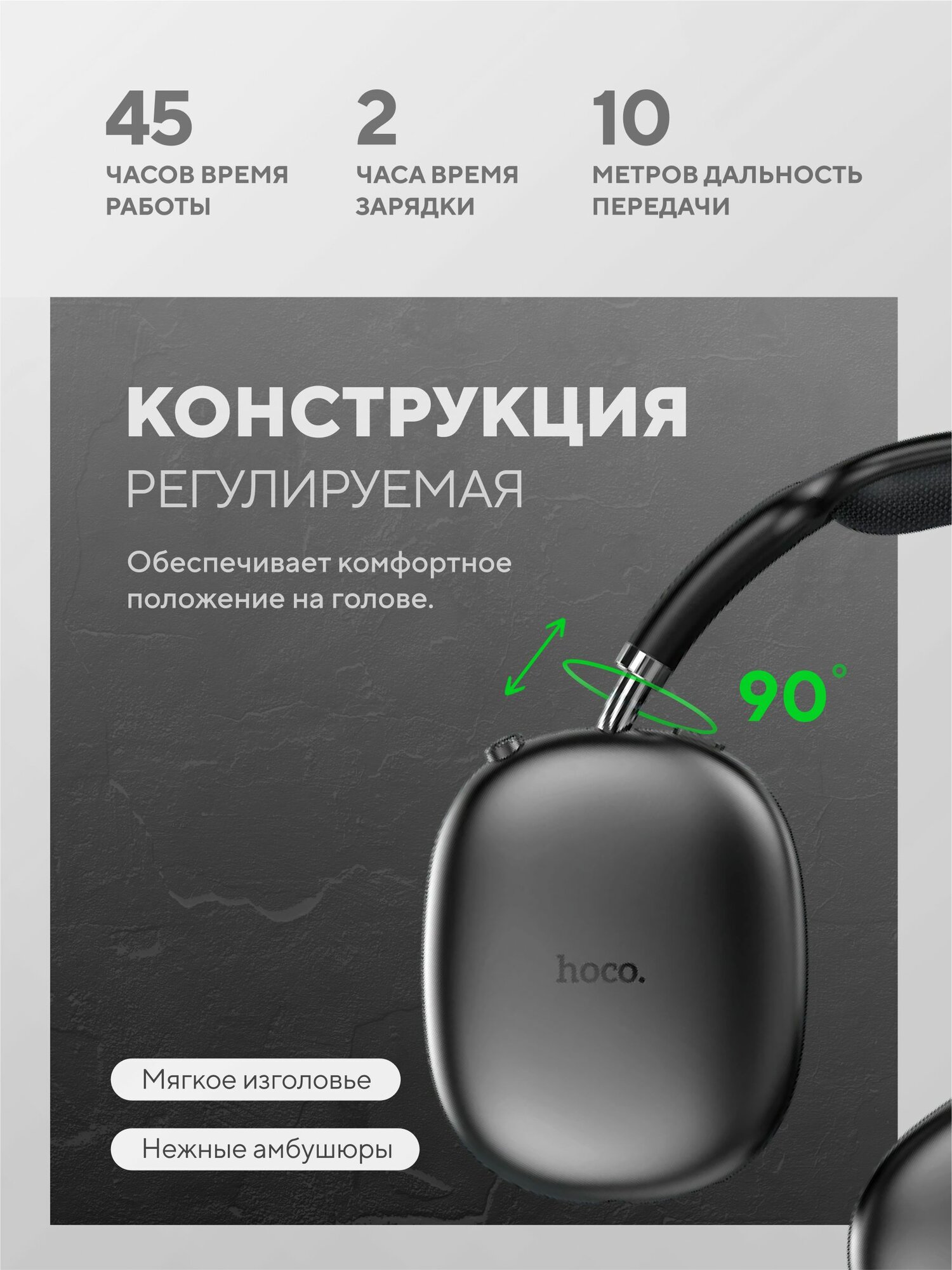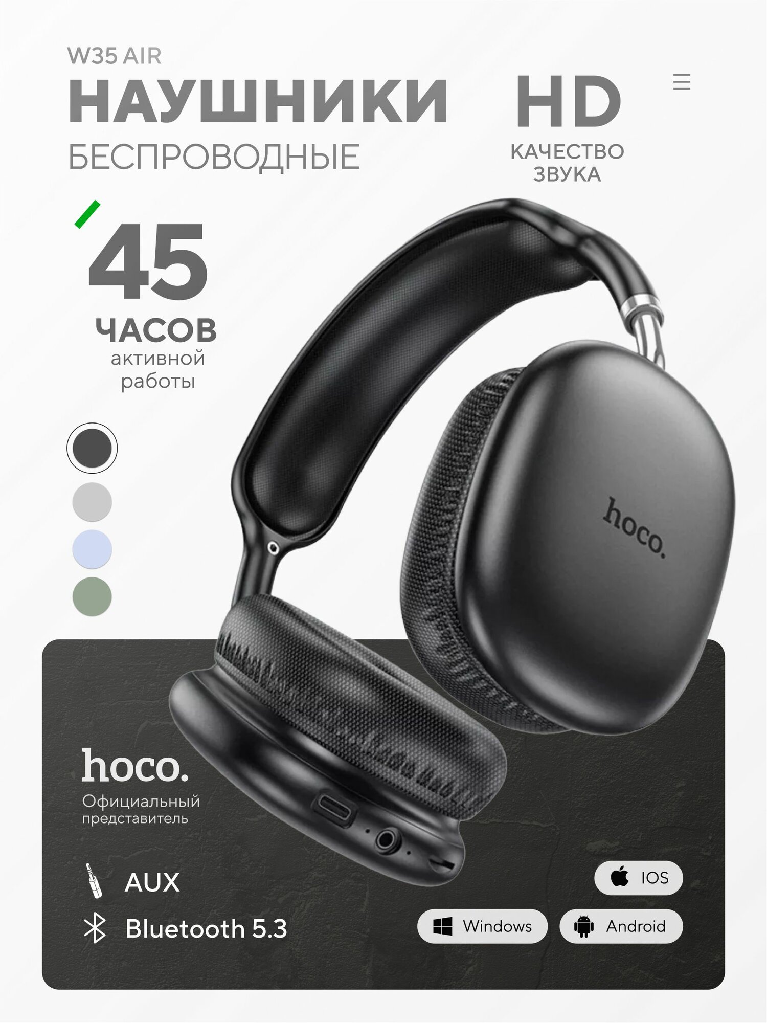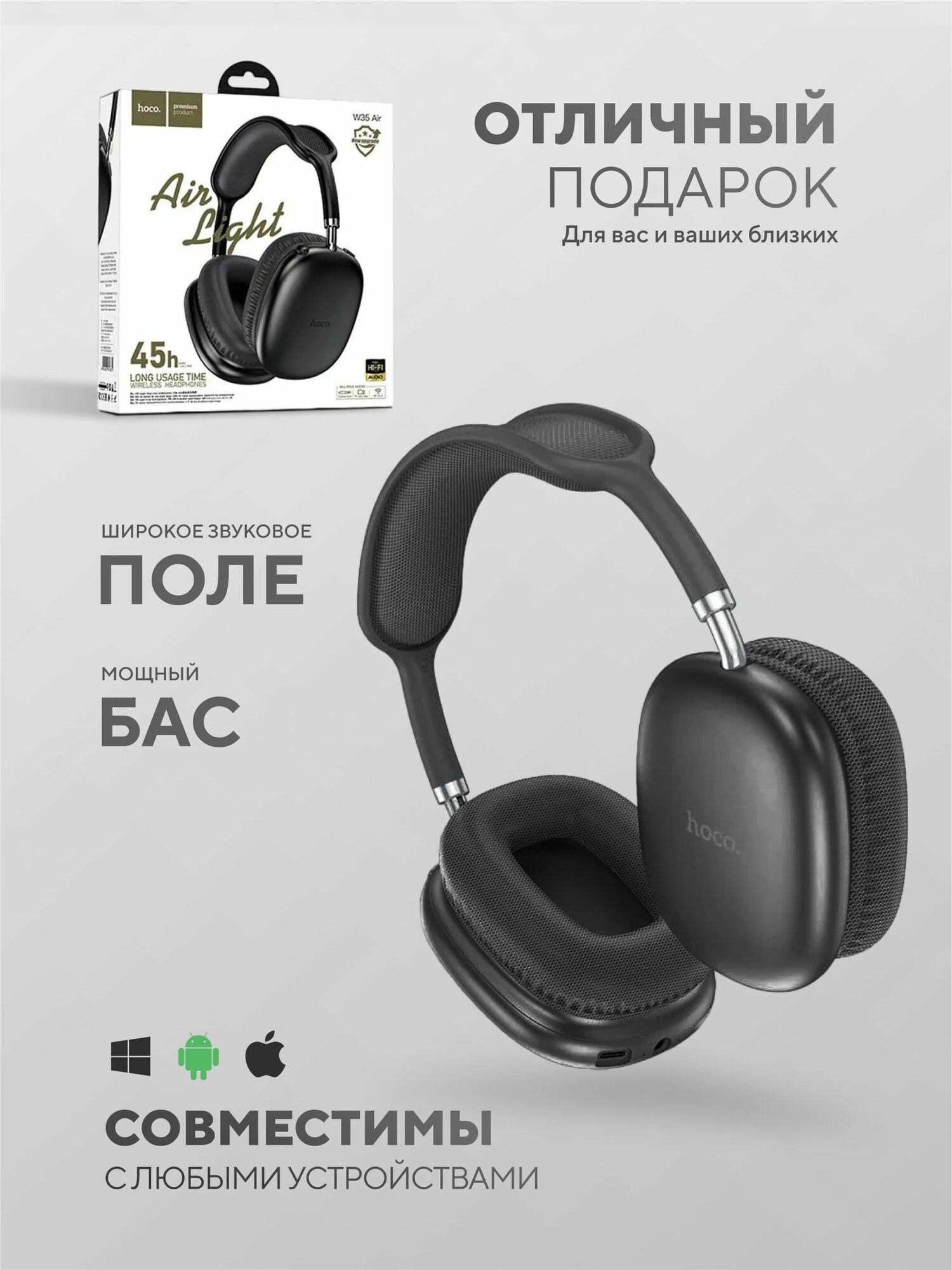 Наушники беспроводные большие Hoco W35 Air Max Черные интересное: