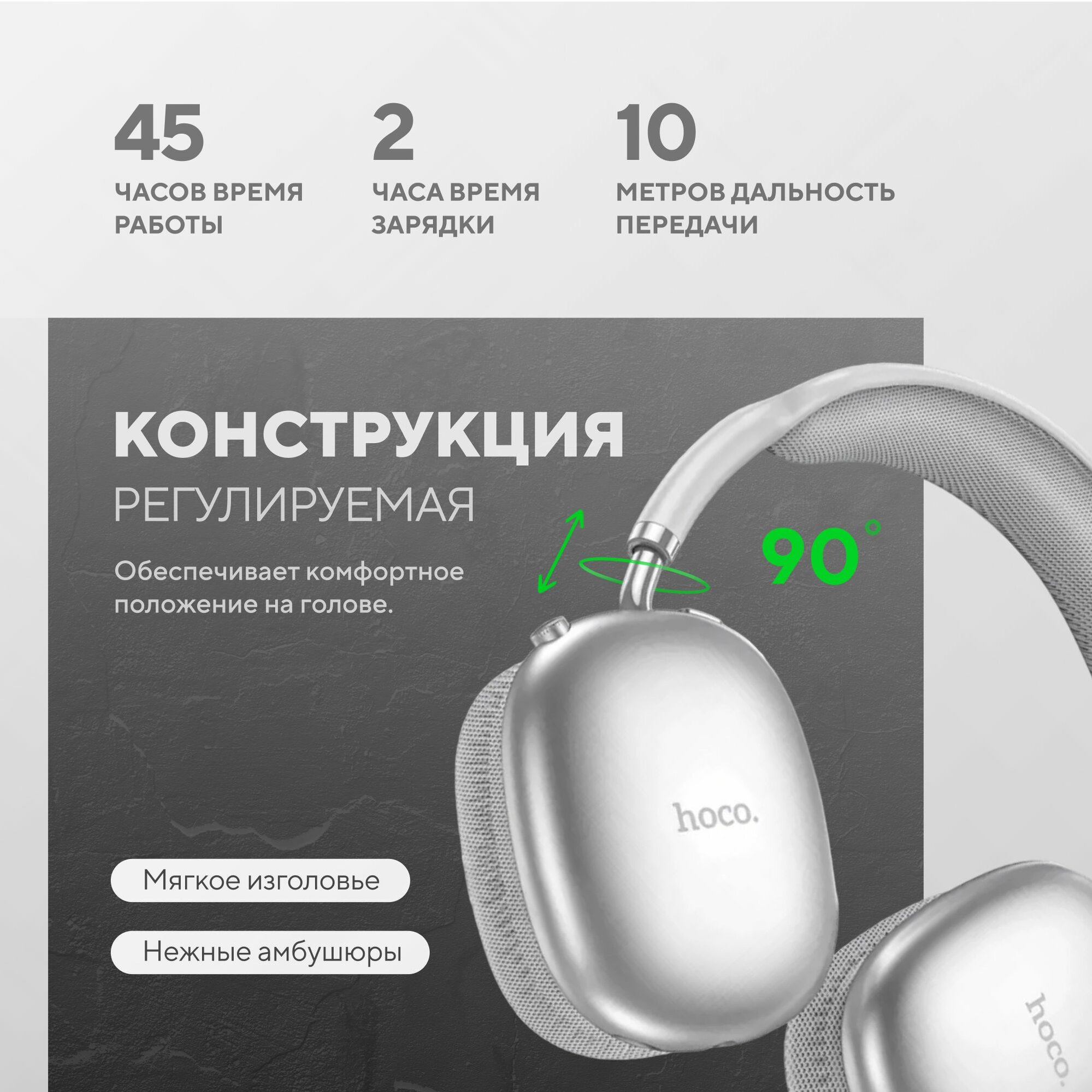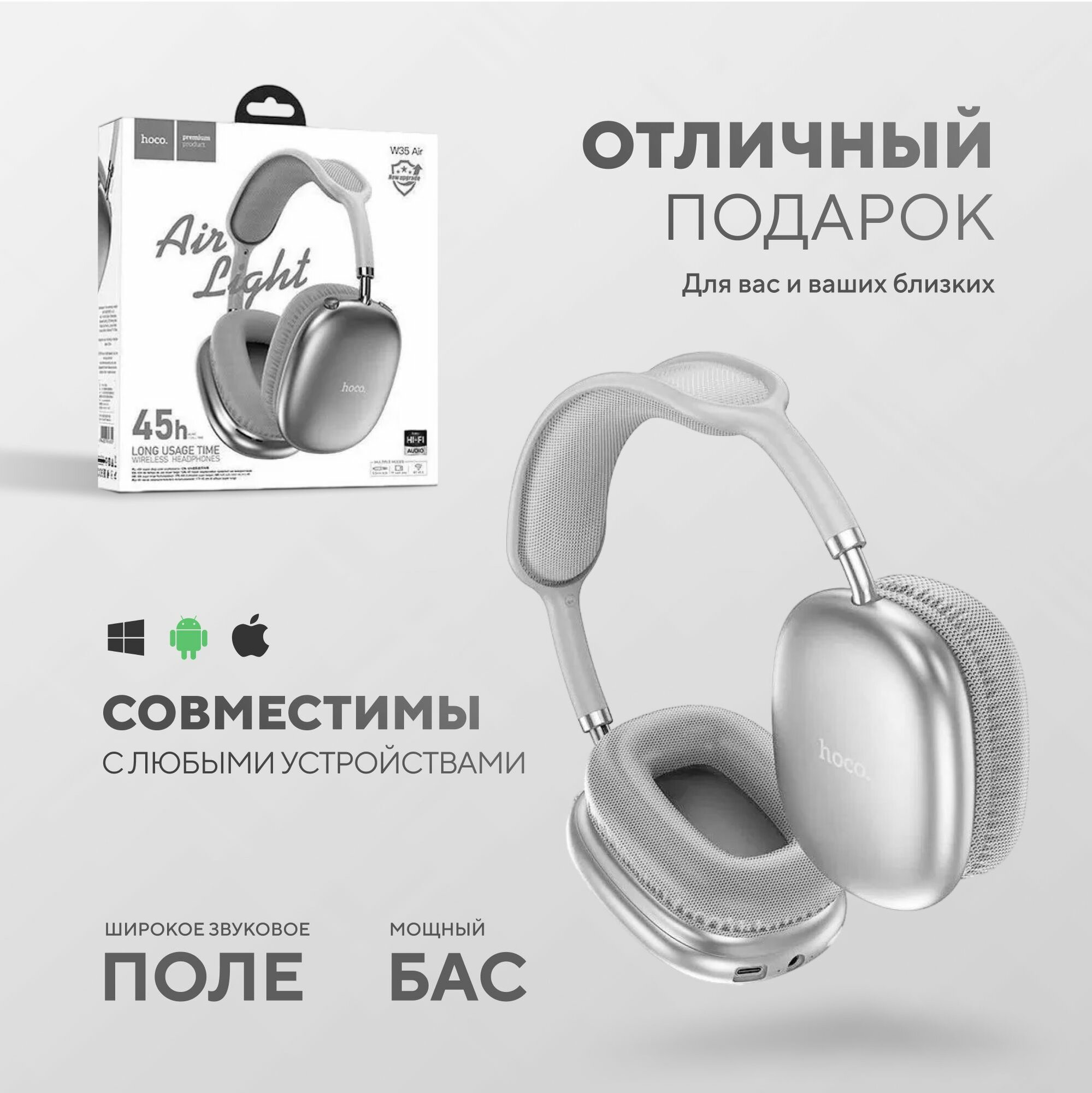 Наушники беспроводные большие Hoco W35 Air Max Серые интересное: