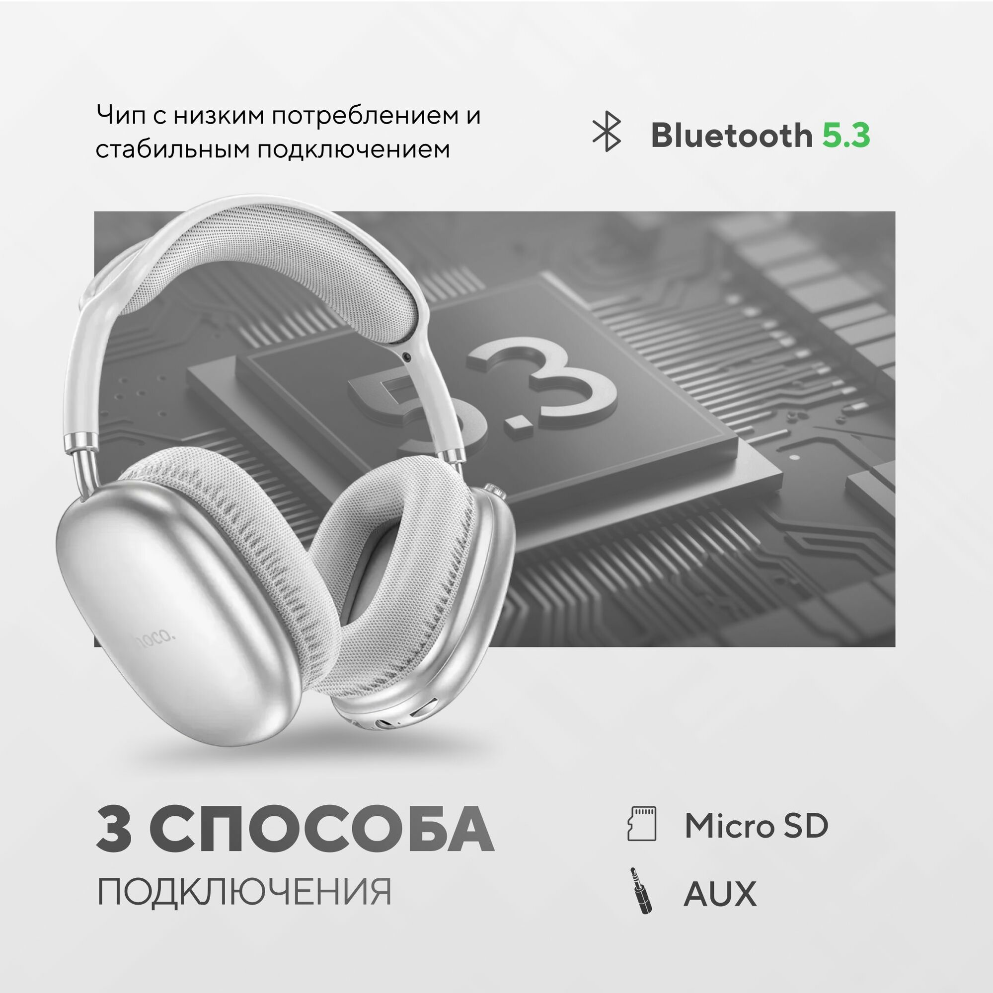 HOCO 2025 Наушники беспроводные большие накладные W55 Plus с шумоподавлением, цвет Silver