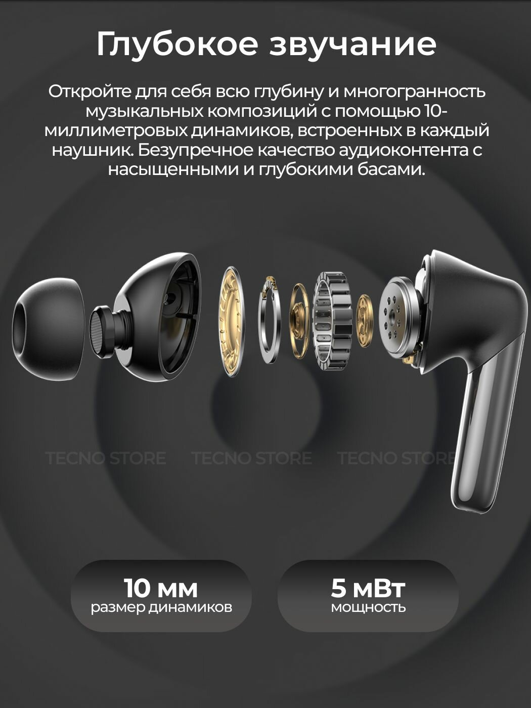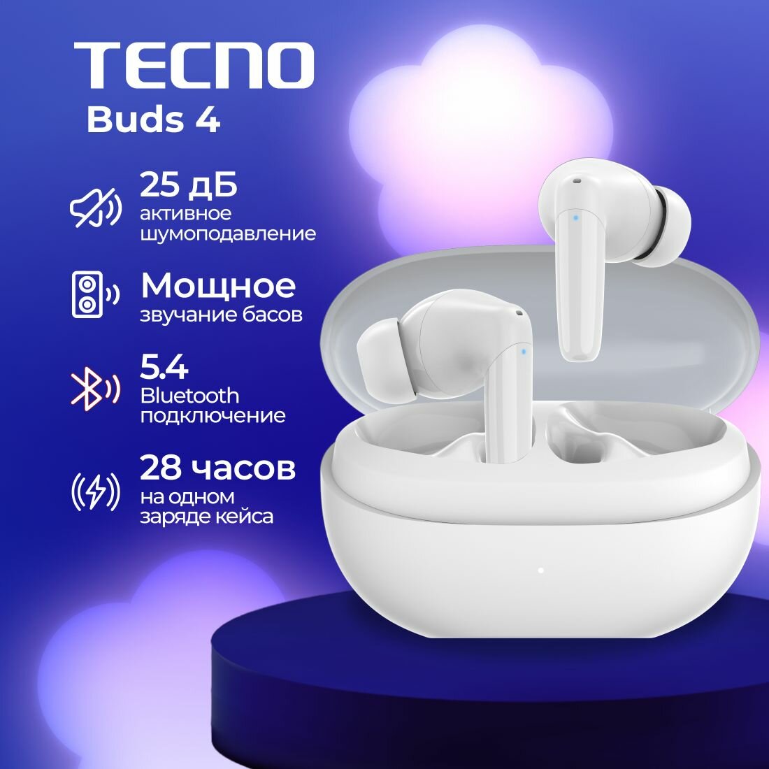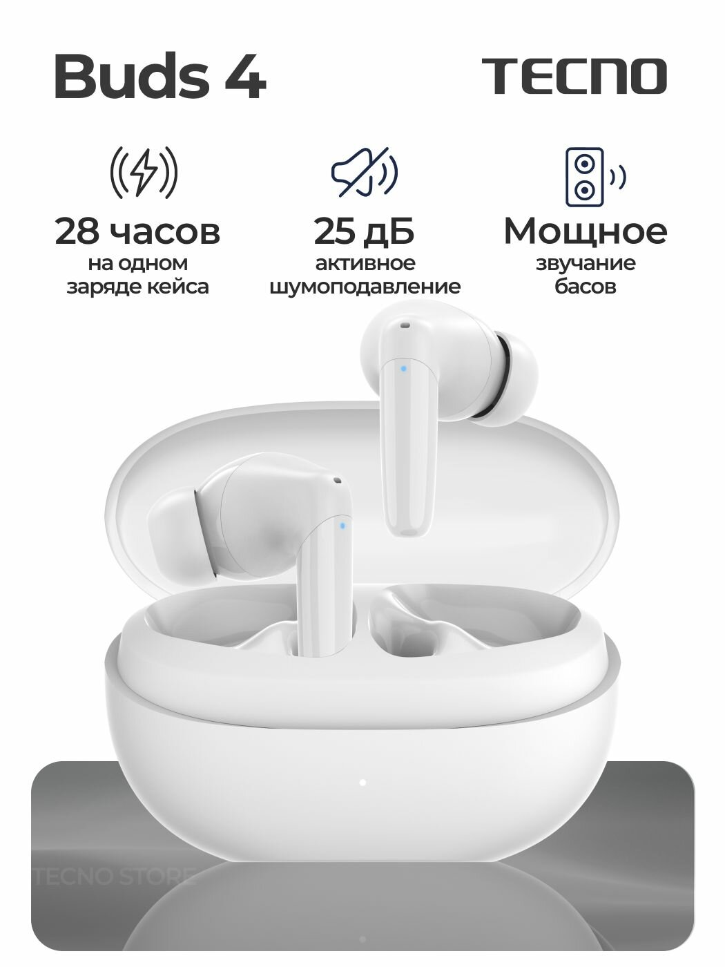 Беспроводные наушники Tecno Buds 4 - белые интересное: