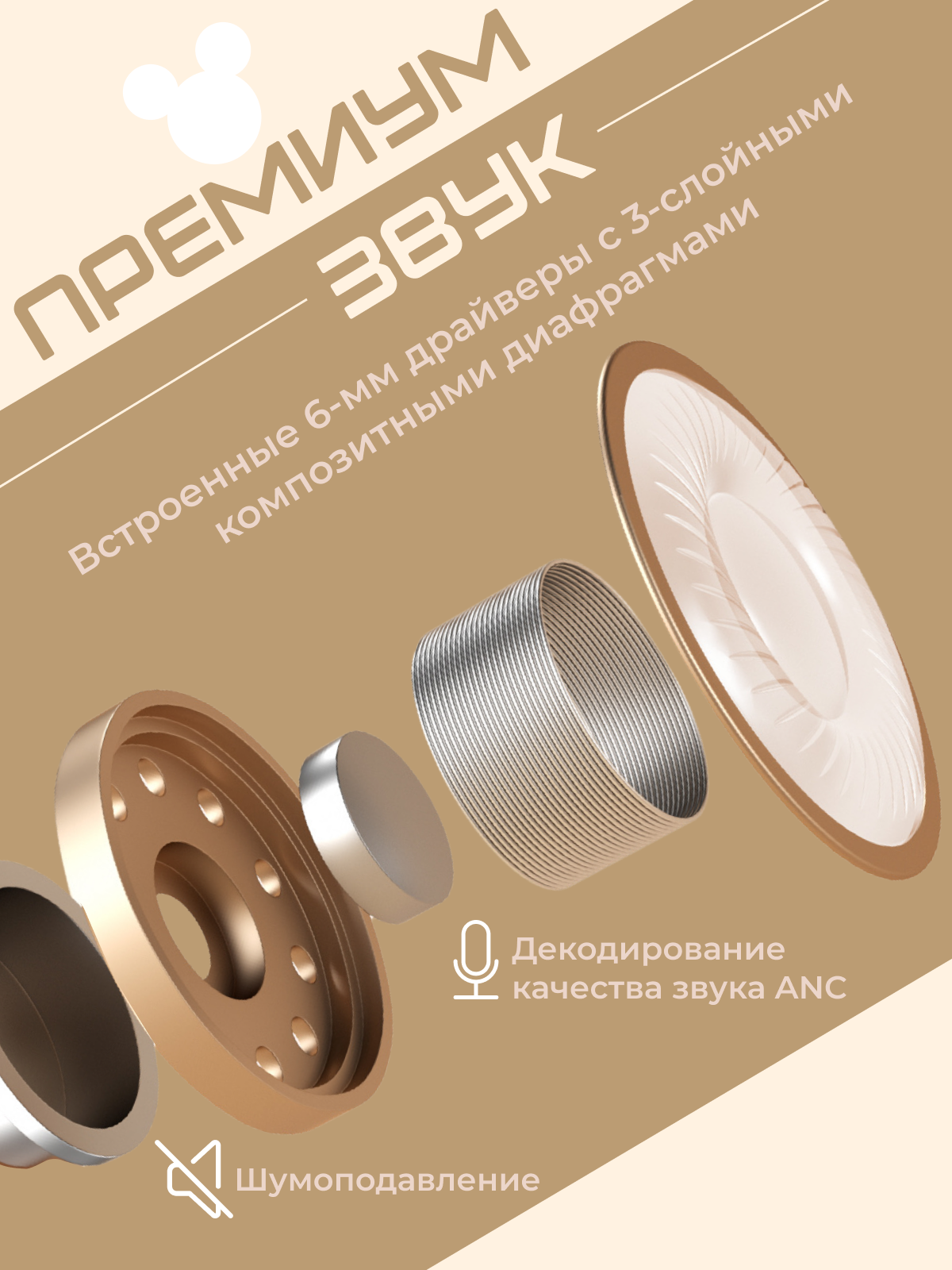 Наушники беспроводные маленькие милые с микрофоном и шумоподавлением капсульные, белый интересное: