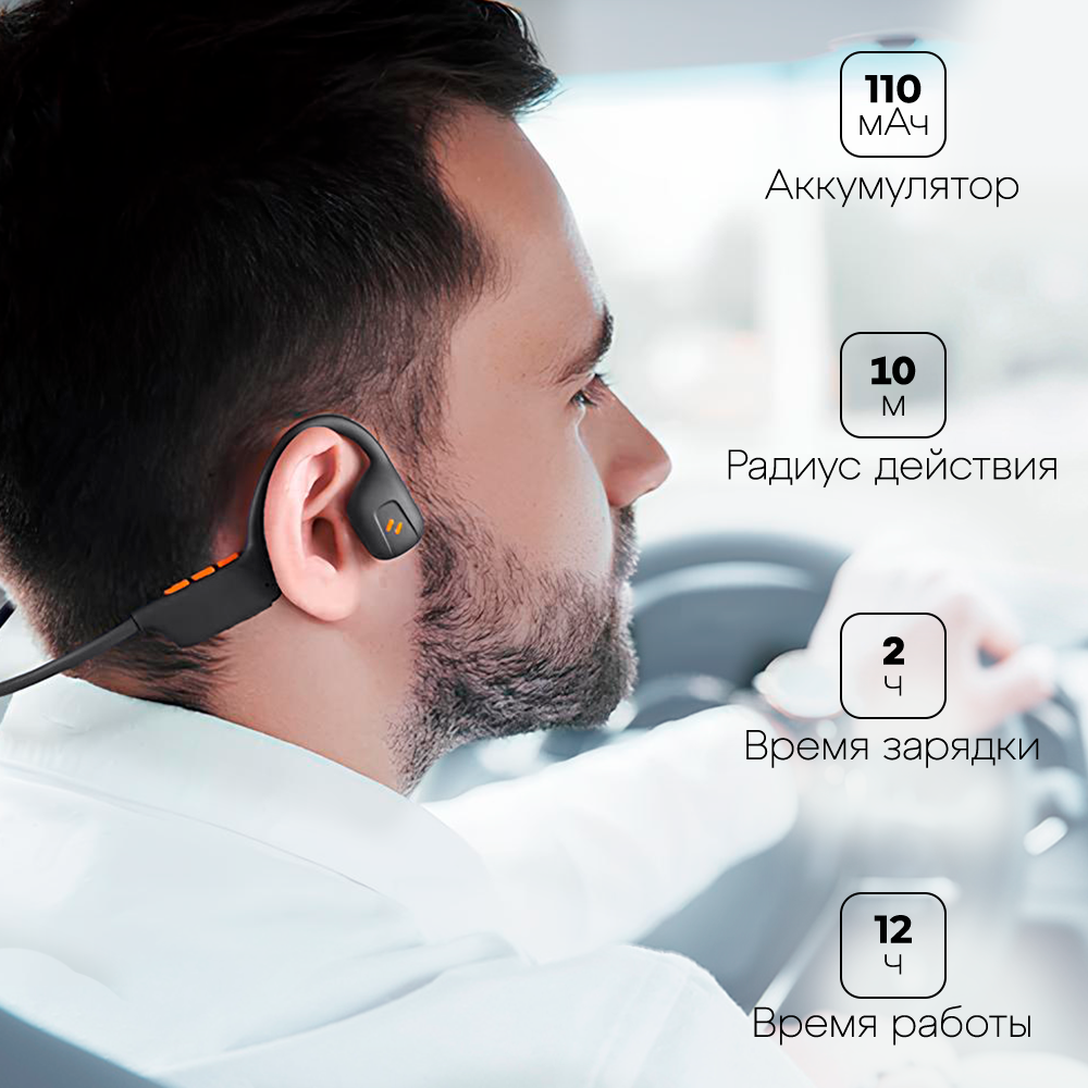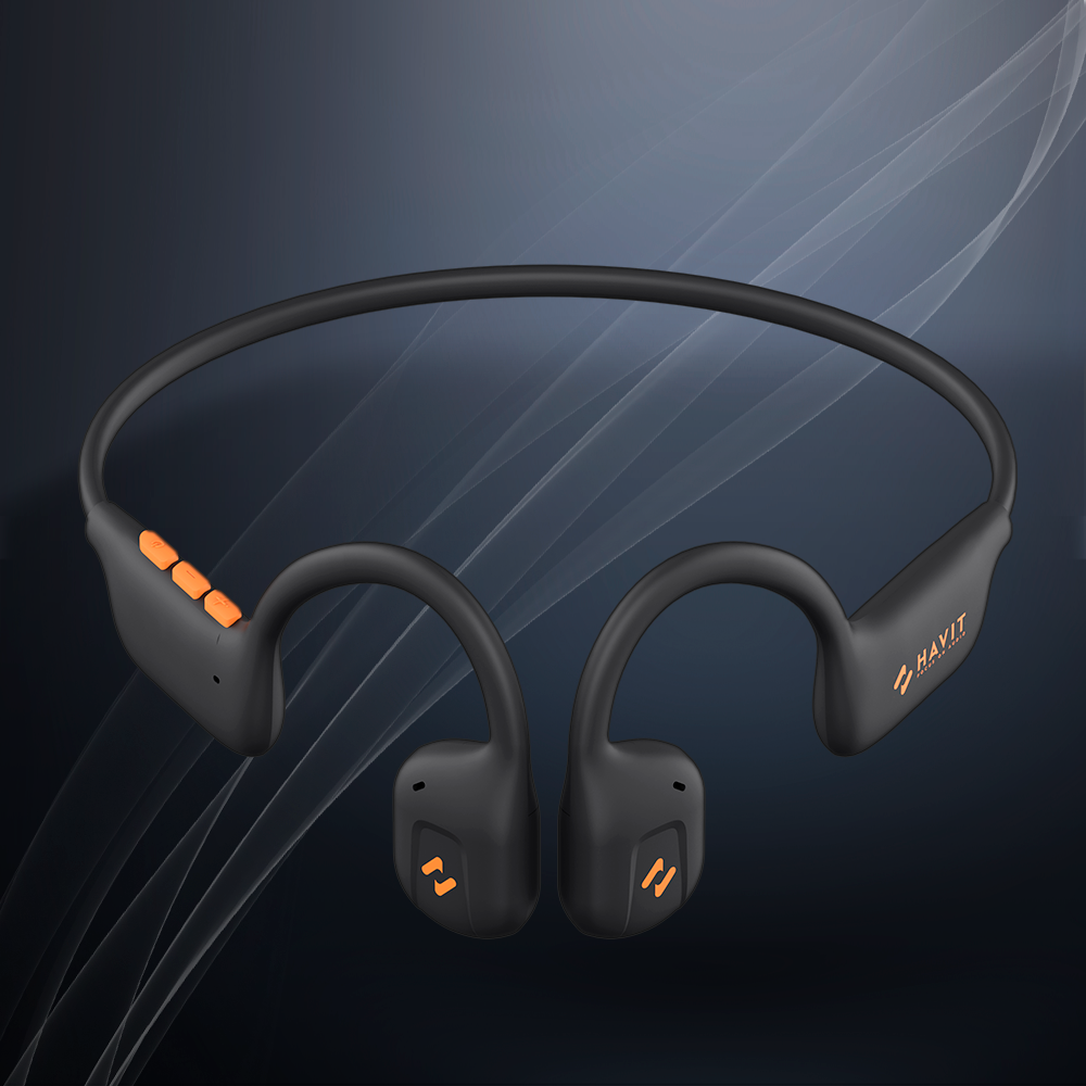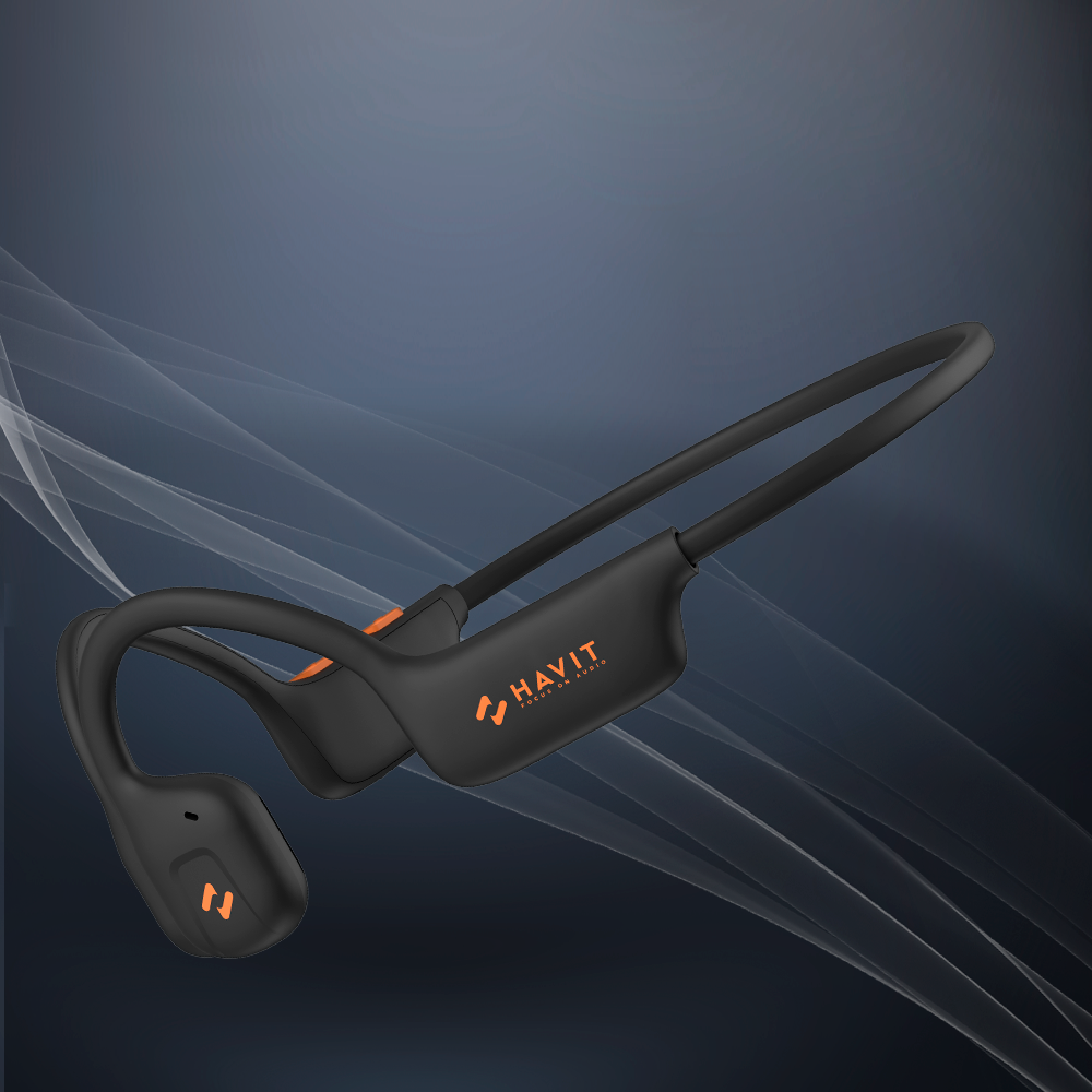 Наушники беспроводные HAVIT E531BT с костной проводимостью, микрофоном, влагозащитой, блютуз гарнитура, спортивные, черные