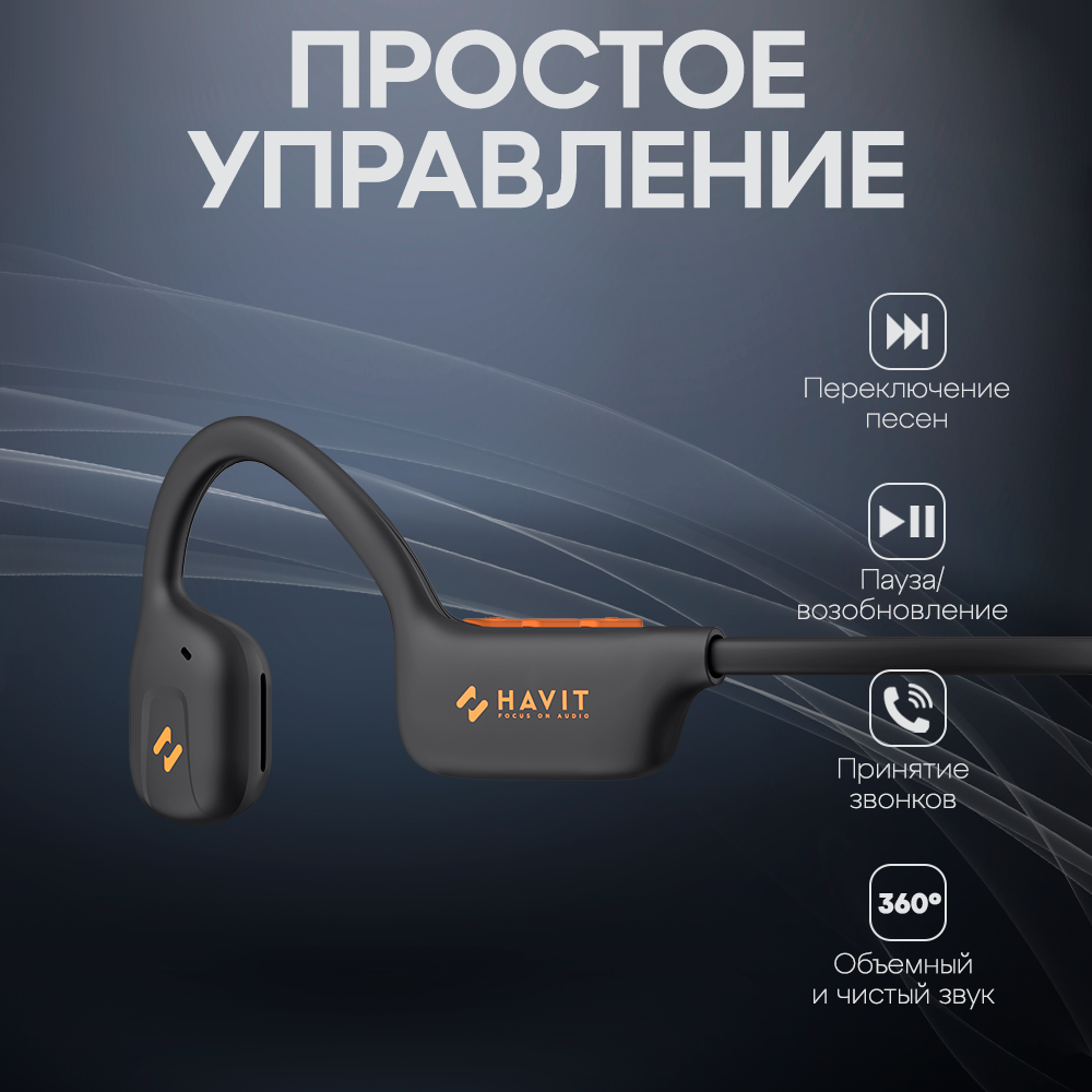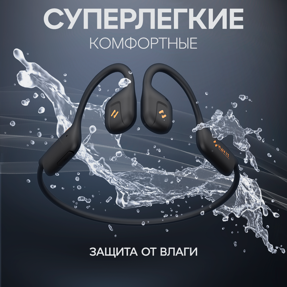 Купить Наушники беспроводные HAVIT Freego1 Air блютуз гарнитура с воздушной проводимостью, микрофоном, спортивные, черные