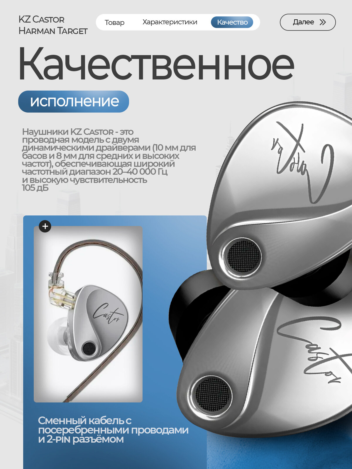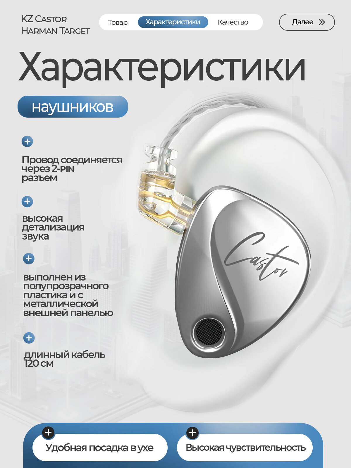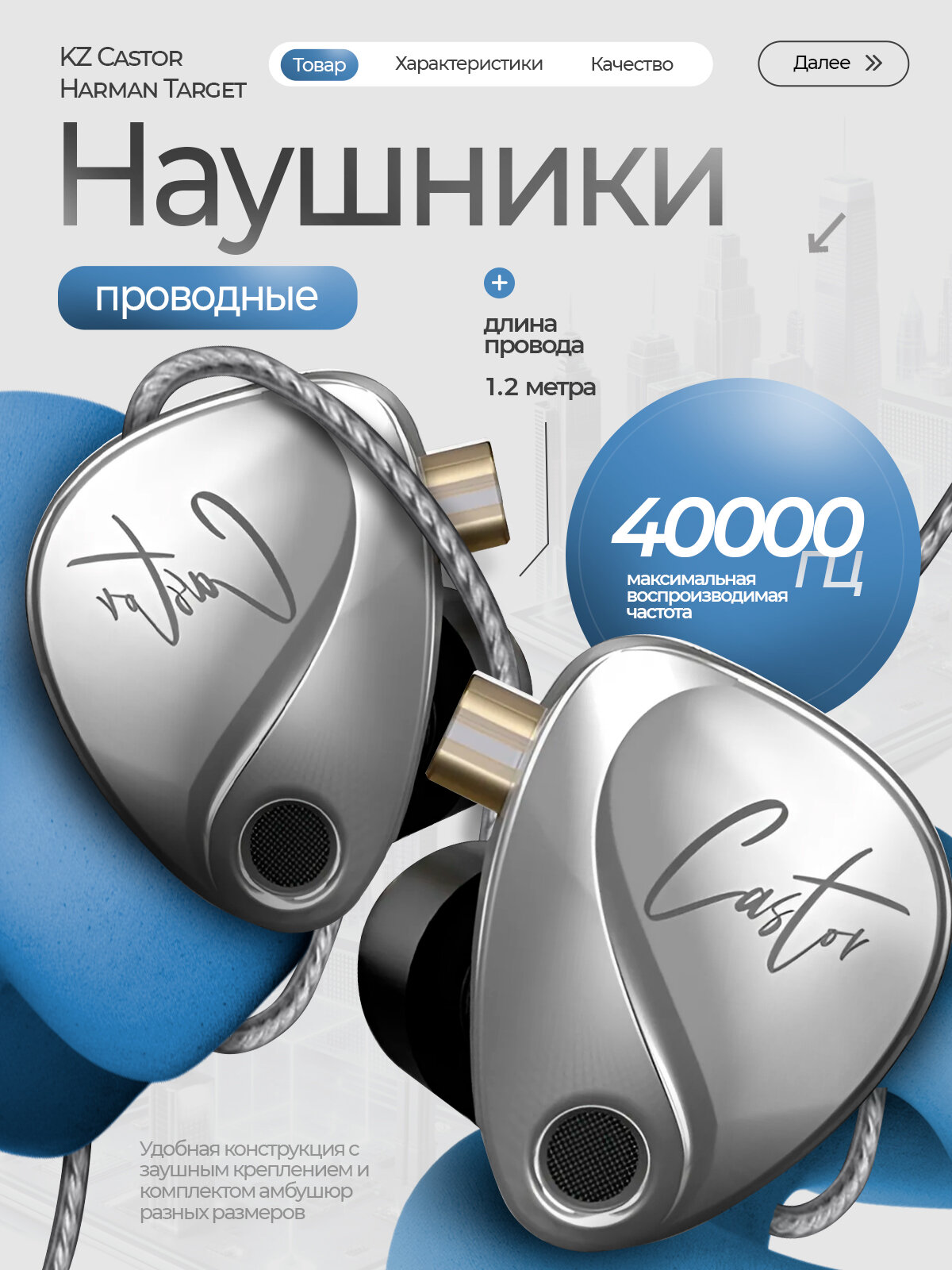 Проводные наушники KZ Castor Harman Target Version, без микрофона интересное: