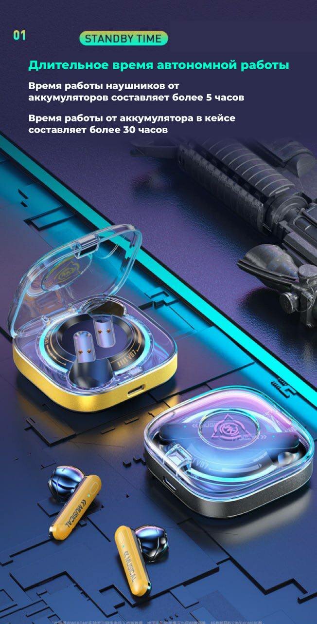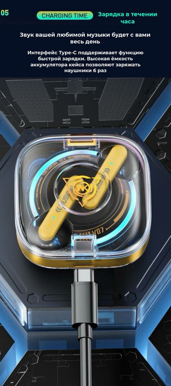 Купить 无线游戏耳机 Wekome V07,带复合振膜,黄色