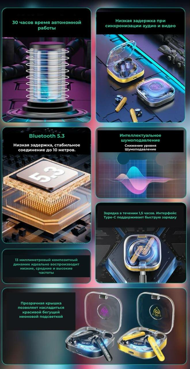 无线游戏耳机 Wekome V07,带复合振膜,黄色 интересное: