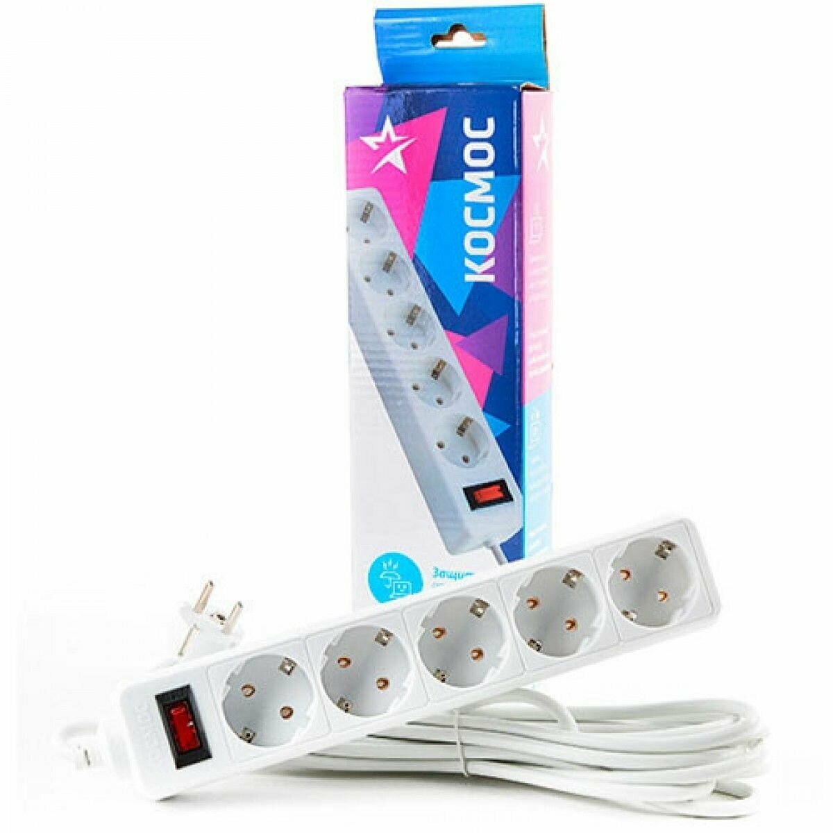 Купить Сетевой фильтр космос 3 м, 5 розеток, пвс 3х0,75мм2, белый