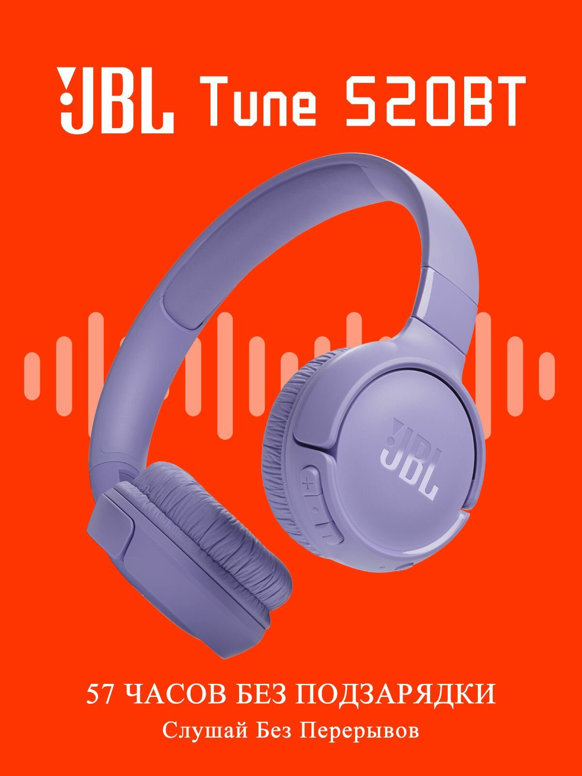 JBL Наушники беспроводные накладные Tune 520BT, лиловый интересное:
