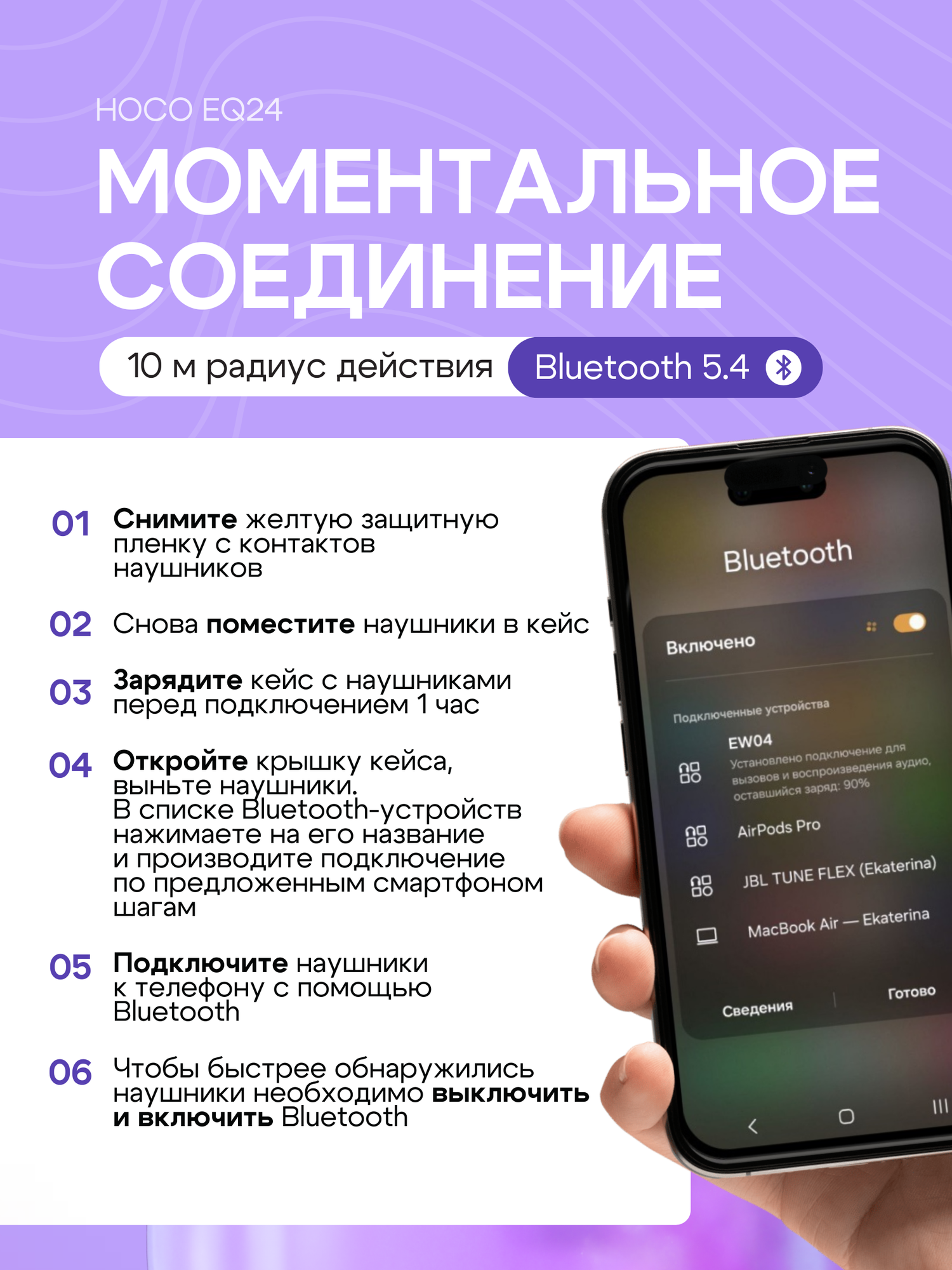 Наушники Hoco EQ24, беспроводные, с шумоподавлением, Bluetooth 5.4 интересное: