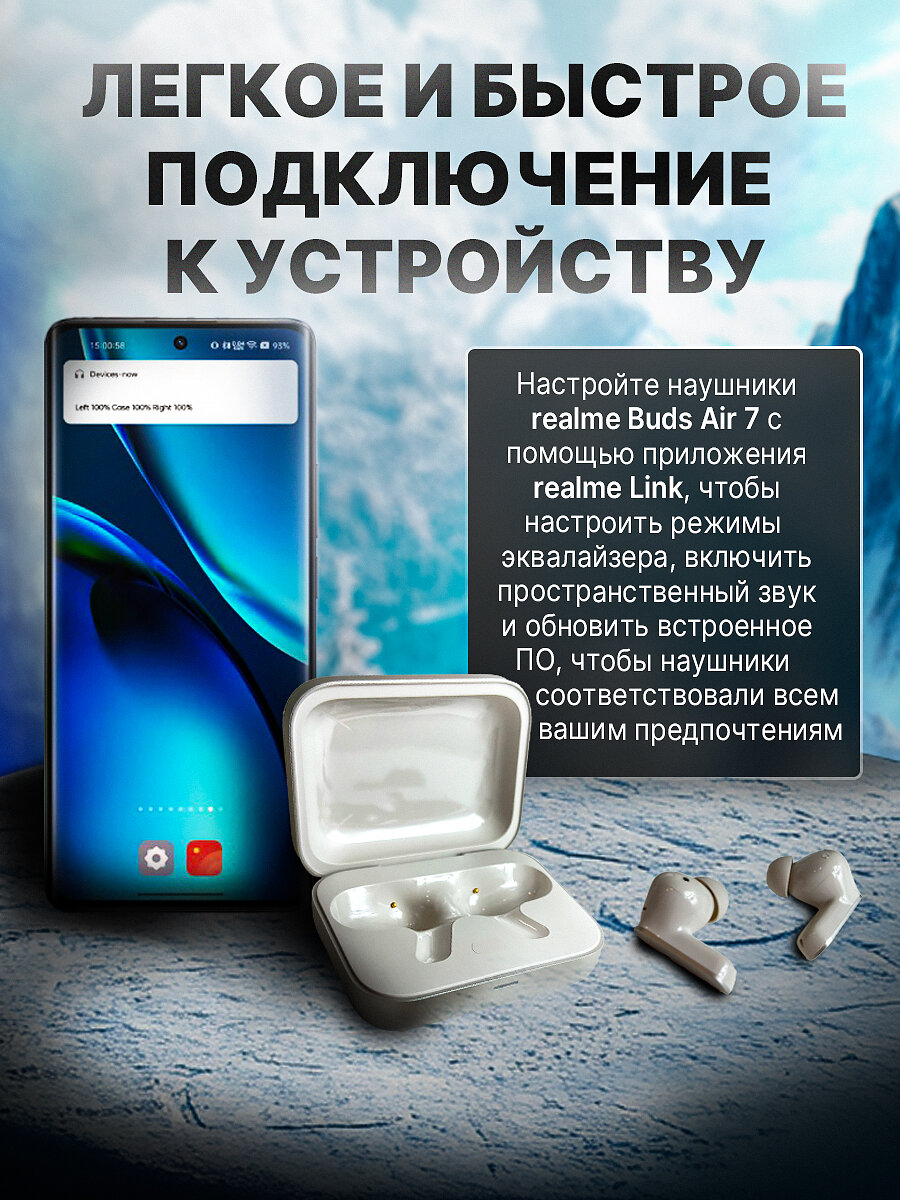 [Доставка из РФ] Глобальная версия realme Buds Air 7 TWS Наушники Bluetooth 5.4 с активным шумоподавлением 52 дБ