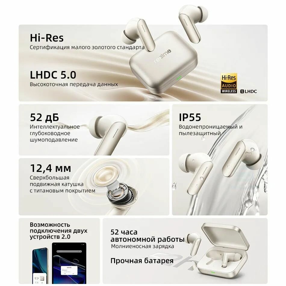 Беспроводные наушники Realme Buds Air 7 , Bluetooth 5.4, Lvory Gold