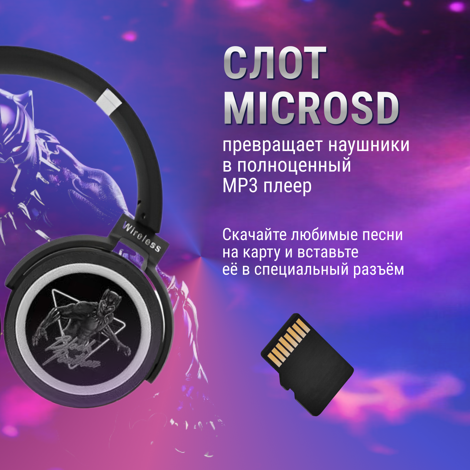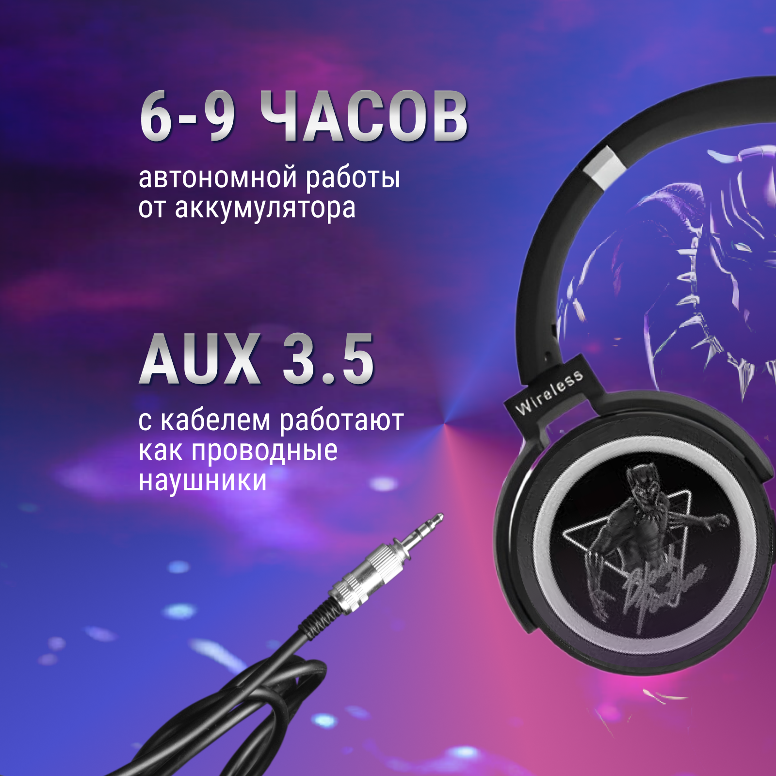 Беспроводные детские стерео наушники с супер героем Черная Пантера интересное: