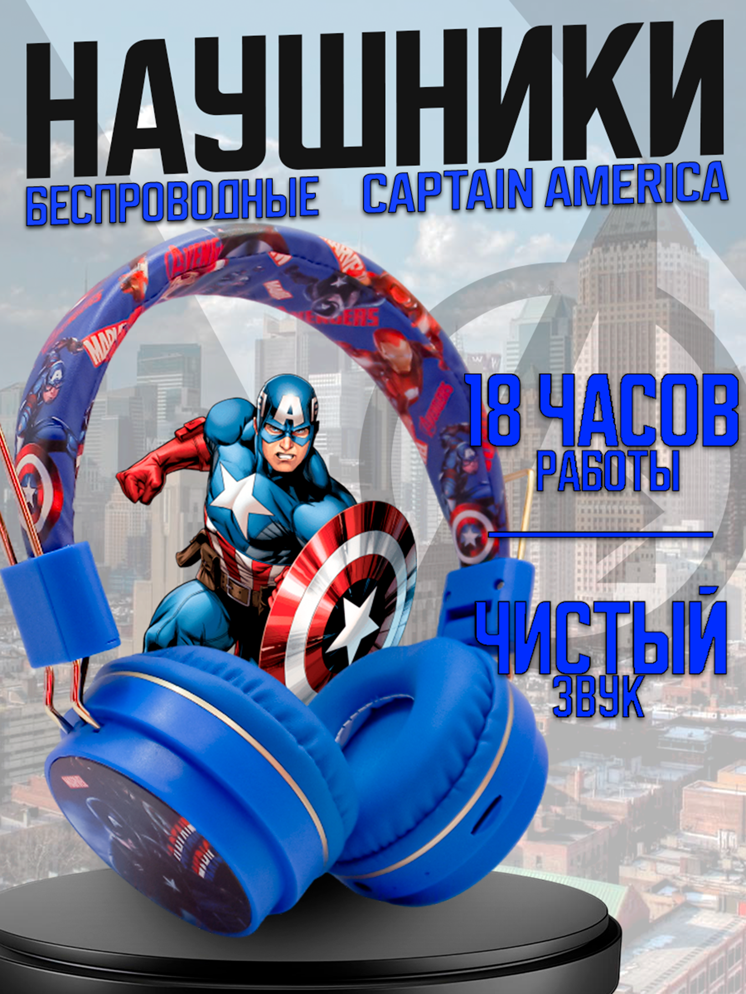 Купить Беспроводные детские стерео наушники с супер героем Капитан Америка