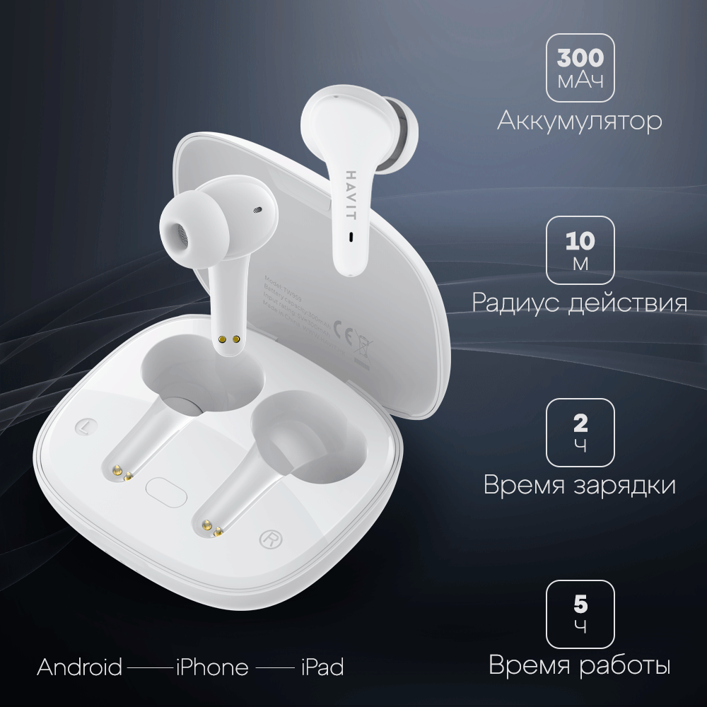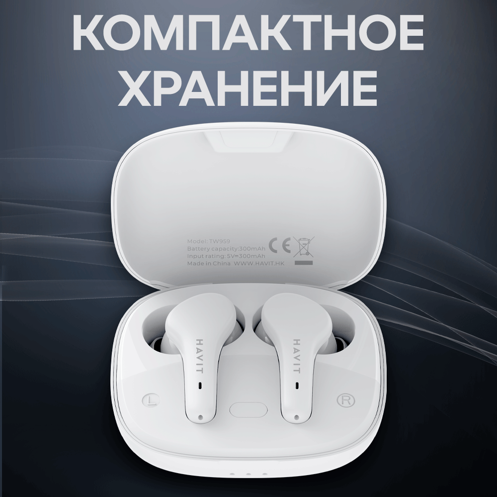 СохранитьНаушники беспроводные TWS HAVIT TW959 с микрофоном, влагозащитой, блютуз, игровые, белые интересное:
