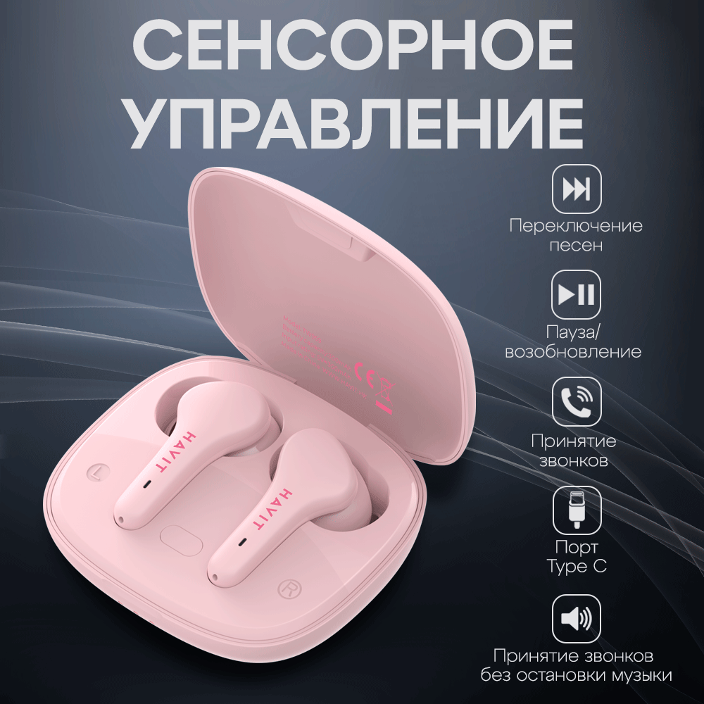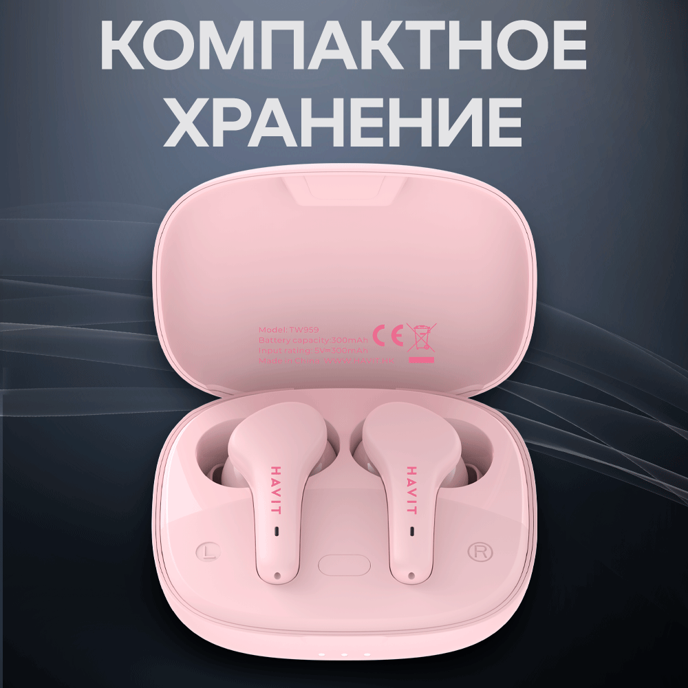 Купить Наушники беспроводные блютуз TWS HAVIT TW959 с микрофоном, влагозащитой, игровые, розовые