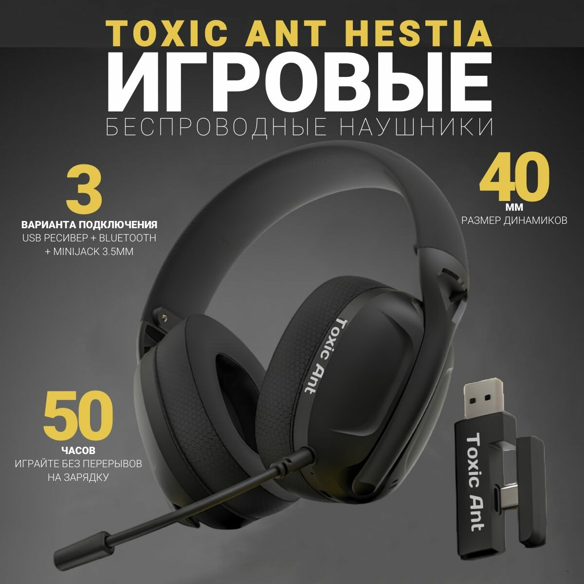 Беспроводные игровые наушники с микрофоном Toxic Ant Hestia, черные интересное:
