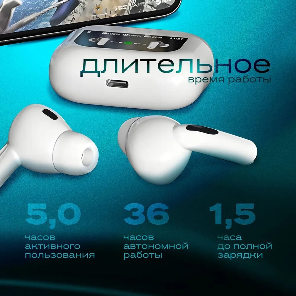 Беспроводные блютуз наушники с сенсорным Экраном/ Наушники с дисплеем для iphone и android, белые С силиконовым чехлом интересное: