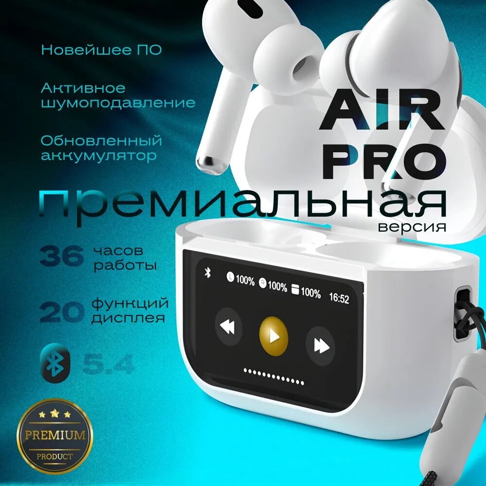 Купить Беспроводные блютуз наушники с сенсорным Экраном/ Наушники с дисплеем для iphone и android, белые С силиконовым чехлом