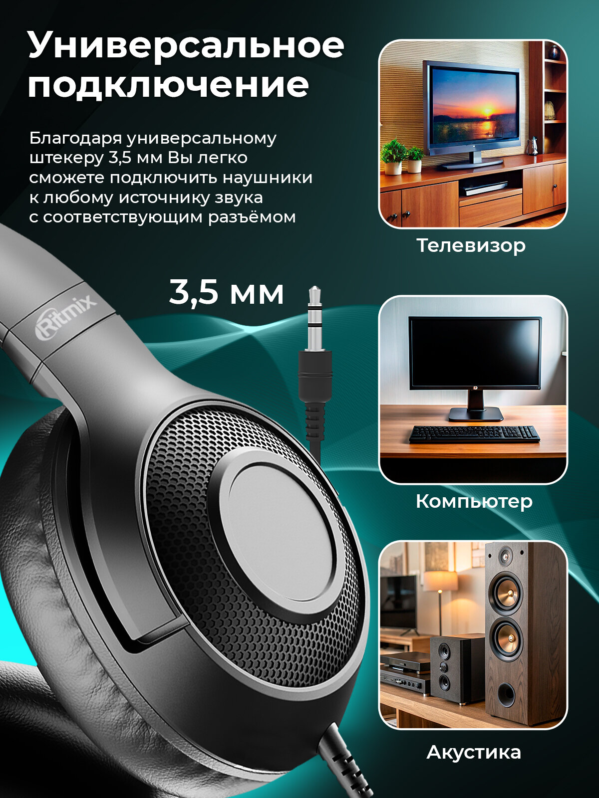 Наушники RITMIX RH-544TV Black, закрытого типа, 32Ом, 100мВт, jack 3.5 мм, 5 м интересное: