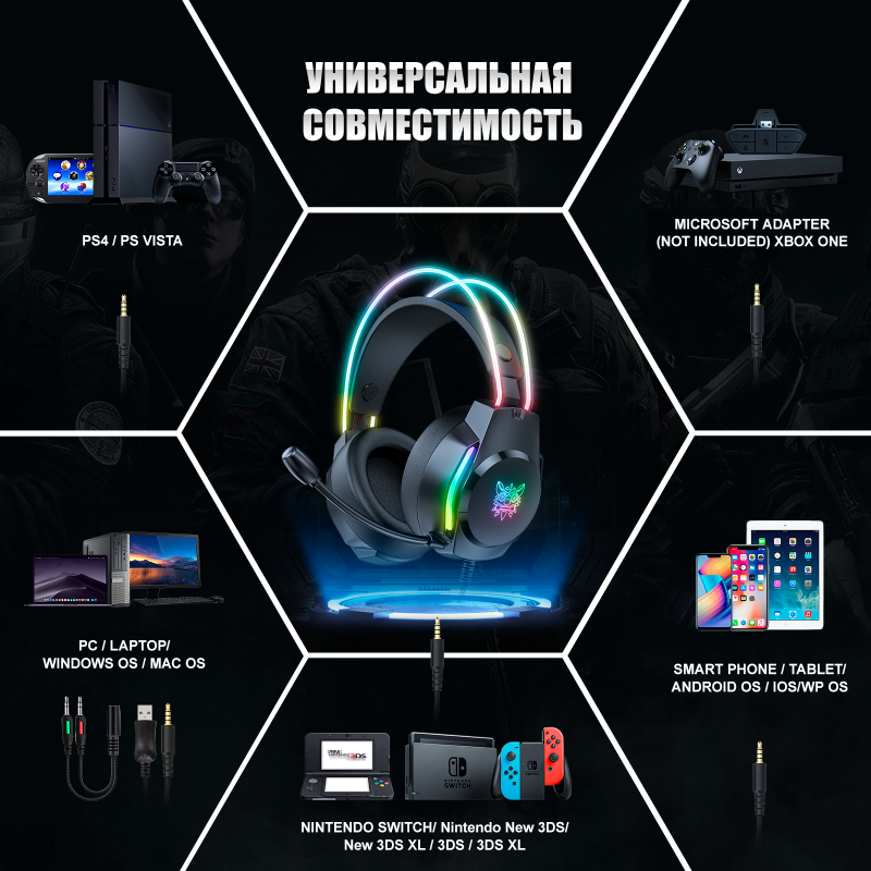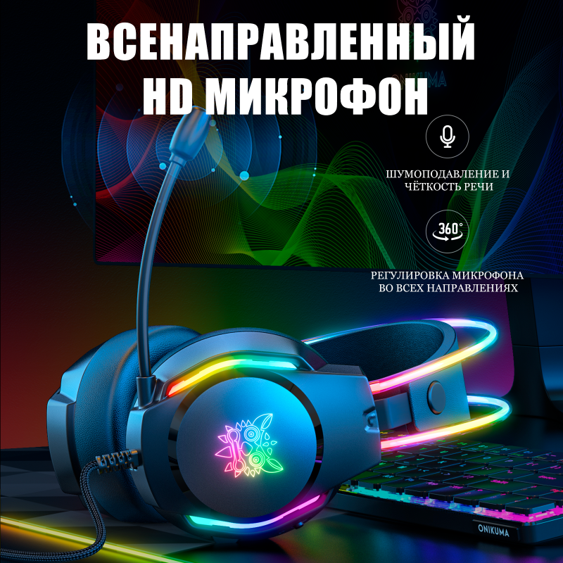 Игровые наушники ONIKUMA X26 Black Space черные с RGB подсветкой интересное: