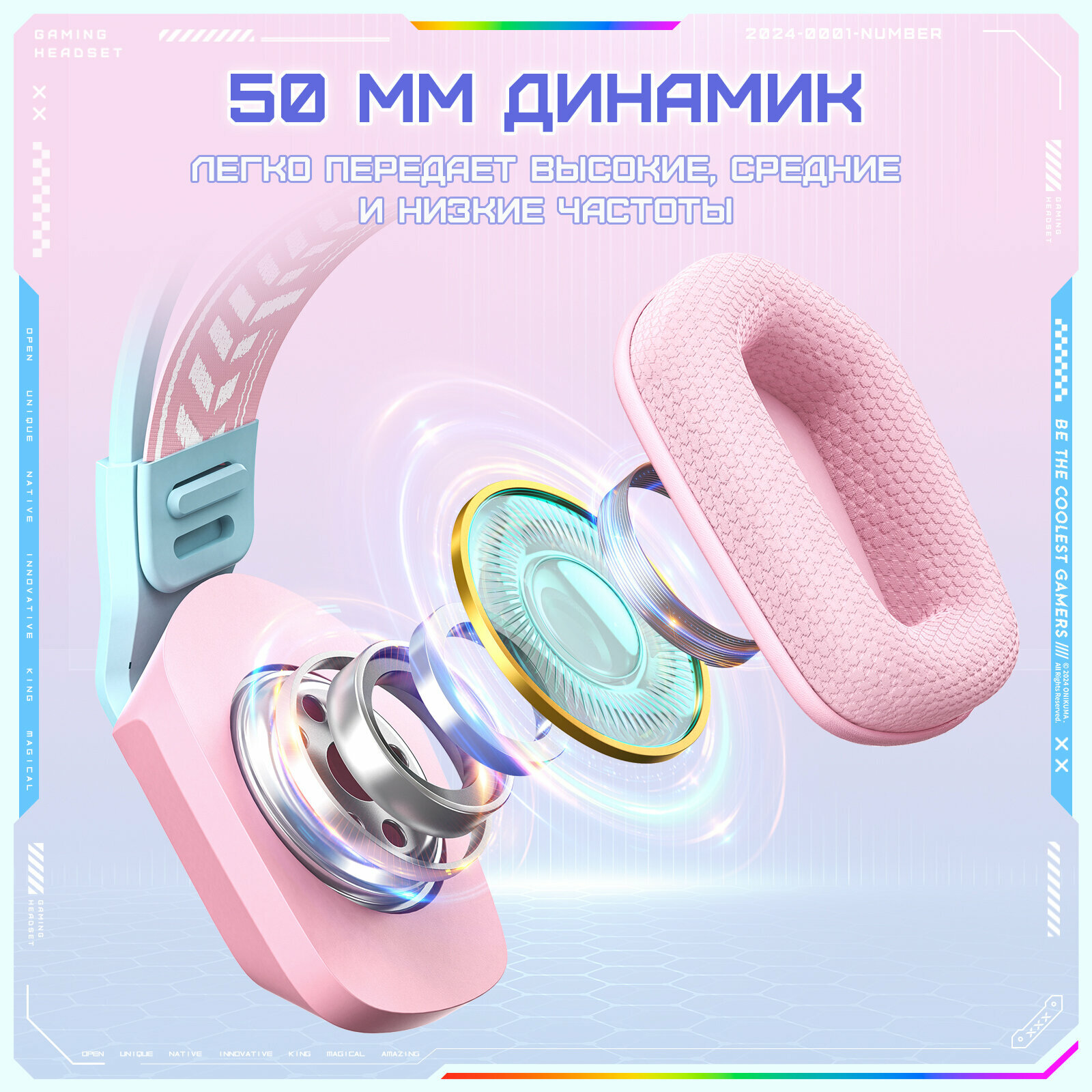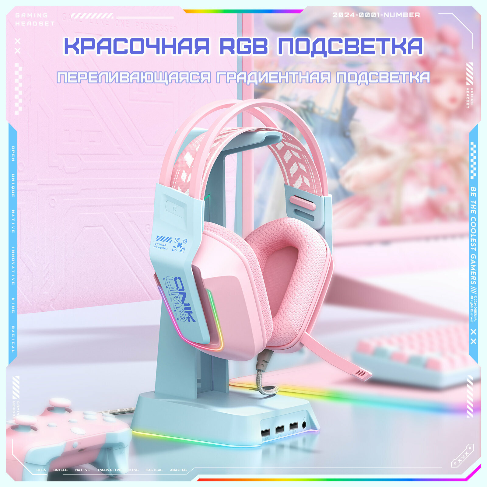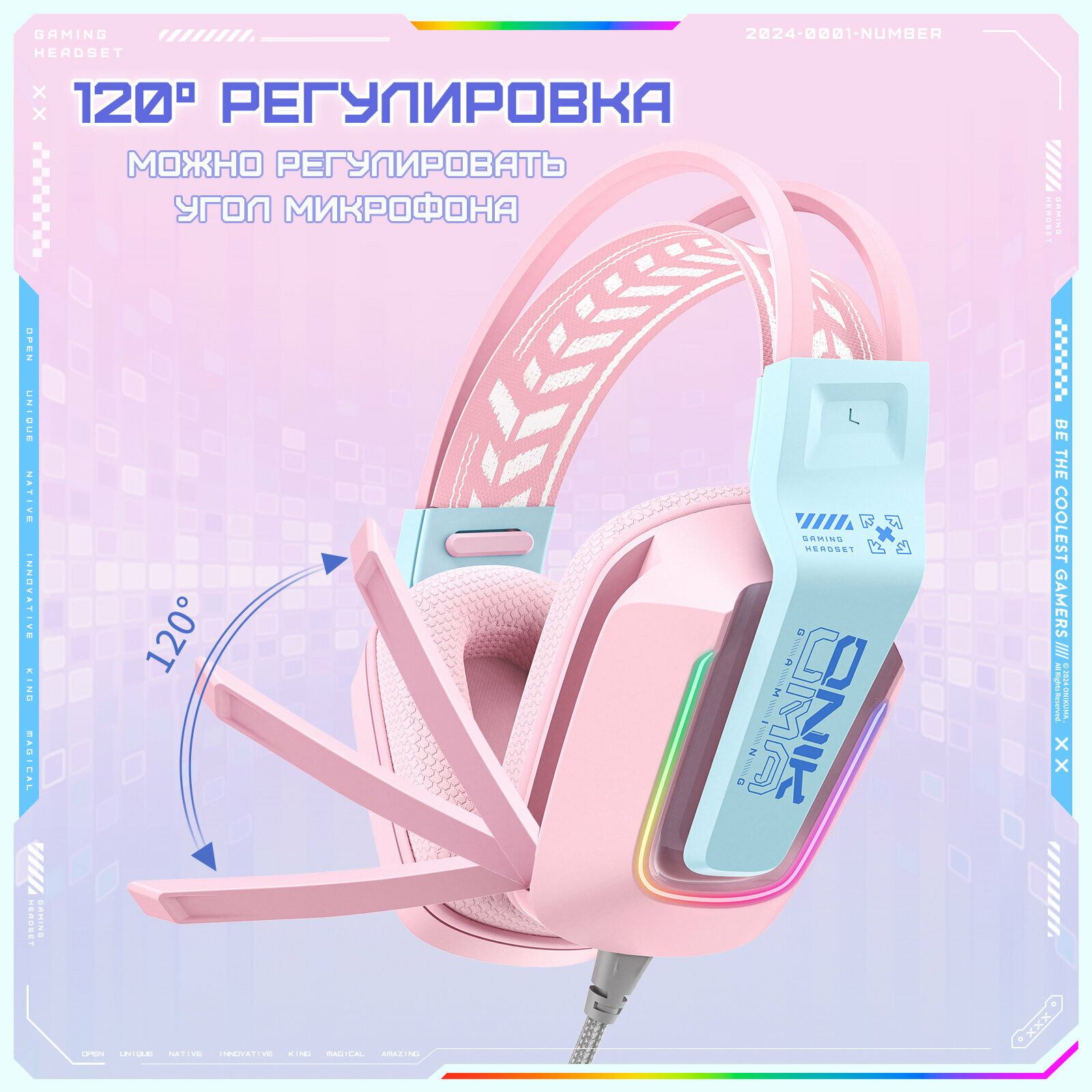 Игровые наушники Onikuma X13-P-CE Cyber Pink розовые с RGB подсветкой / с декоративными кошачьими ушками интересное: