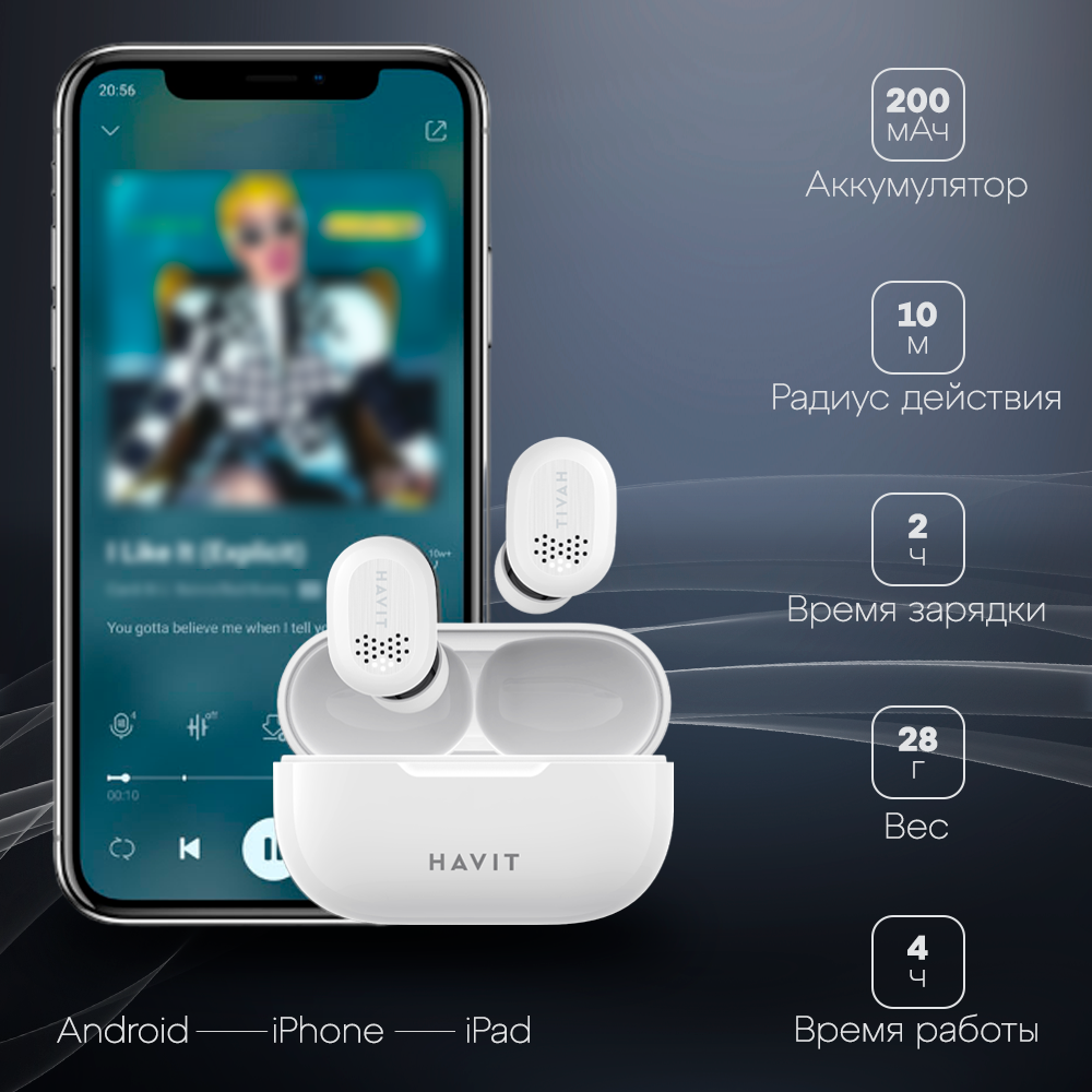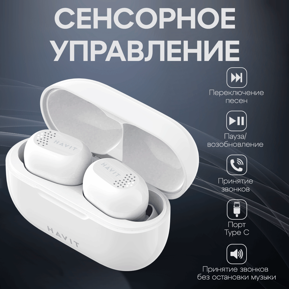 Наушники беспроводные TWS HAVIT TW925 гарнитура блютуз, с микрофоном, белые интересное: