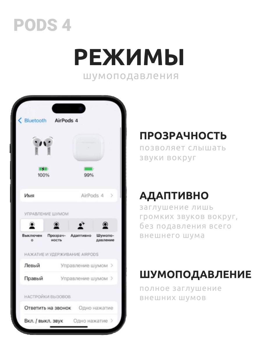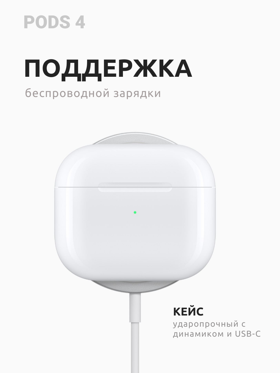 Наушники беспроводные с шумоподавлением , с беспроводной зарядкой для iPhone и Android APods 4 для спорта, повседневные интересное: