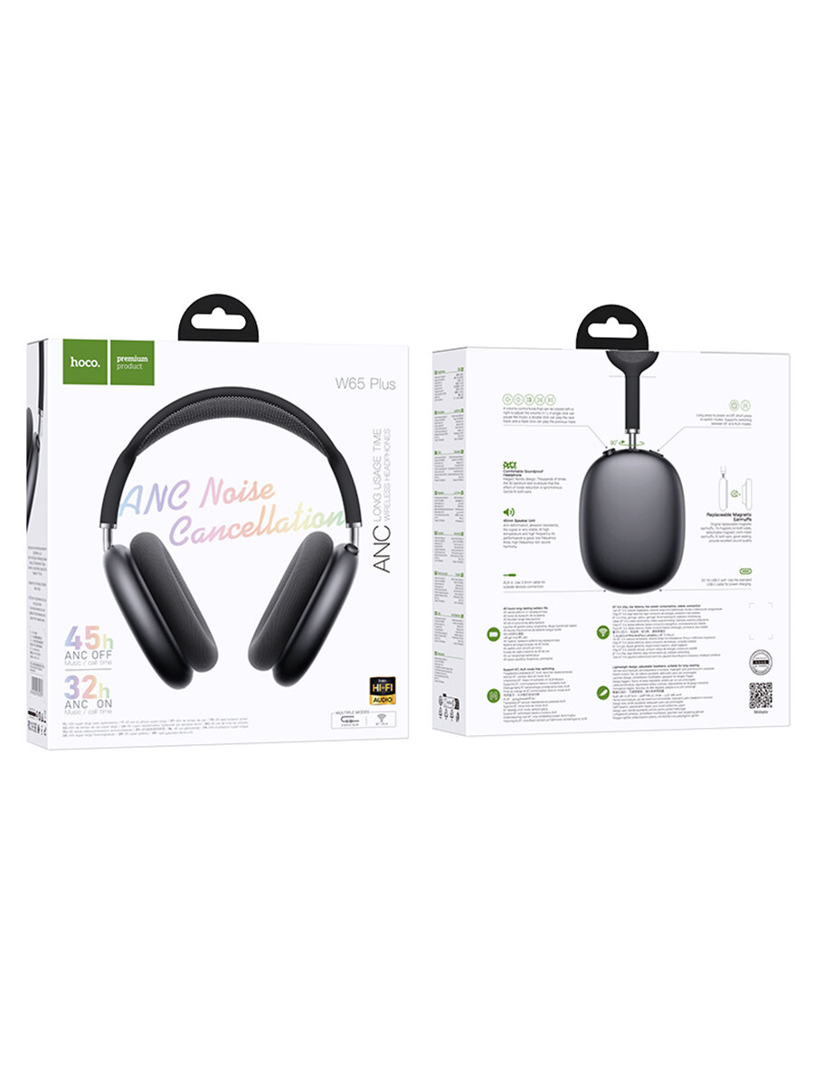 Купить Беспроводные наушники с шумоподавлением Hoco W65 Plus с аккумулятором на 45 часов, BT 5.4, цвет Черно-серый