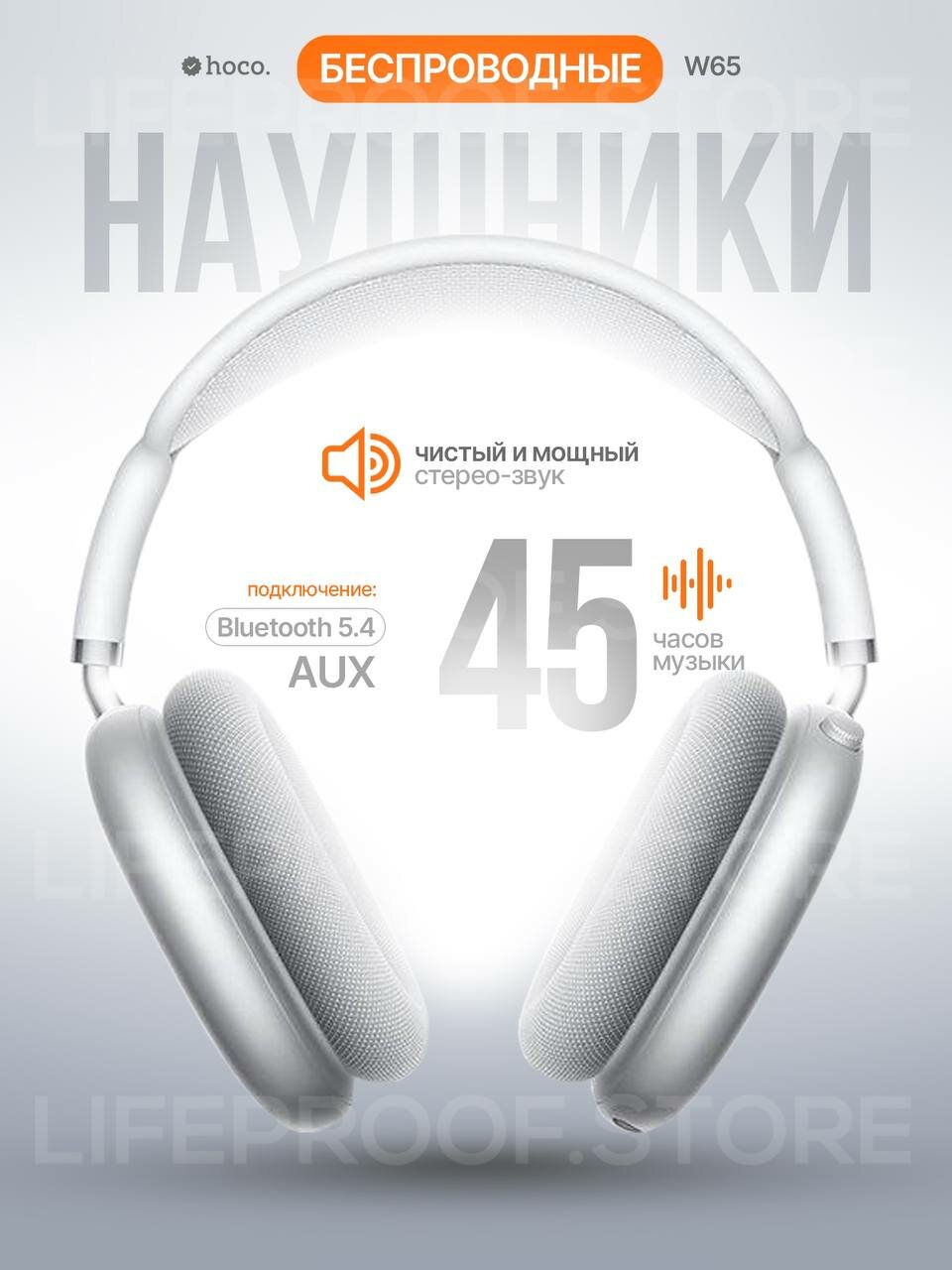 СохранитьБеспроводные полноразмерные наушники Hoco W65 с аккумулятором на 45 часов, BT 5.4, цвет Серебристый интересное:
