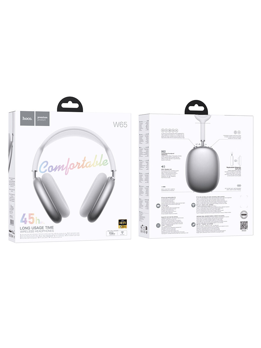 Купить Беспроводные полноразмерные наушники Hoco W65 с аккумулятором на 45 часов, BT 5.4, цвет Серебристый