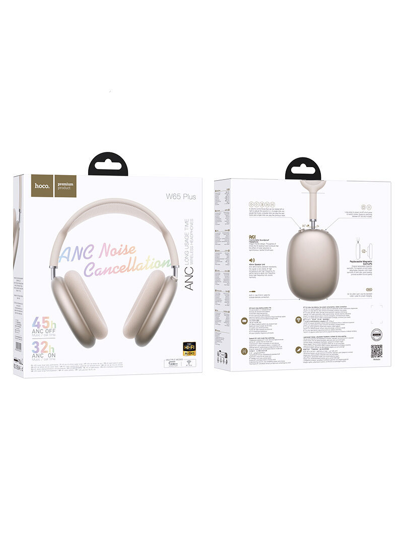Купить Беспроводные наушники с шумоподавлением Hoco W65 Plus с аккумулятором на 45 часов, BT 5.4, цвет Бежевый