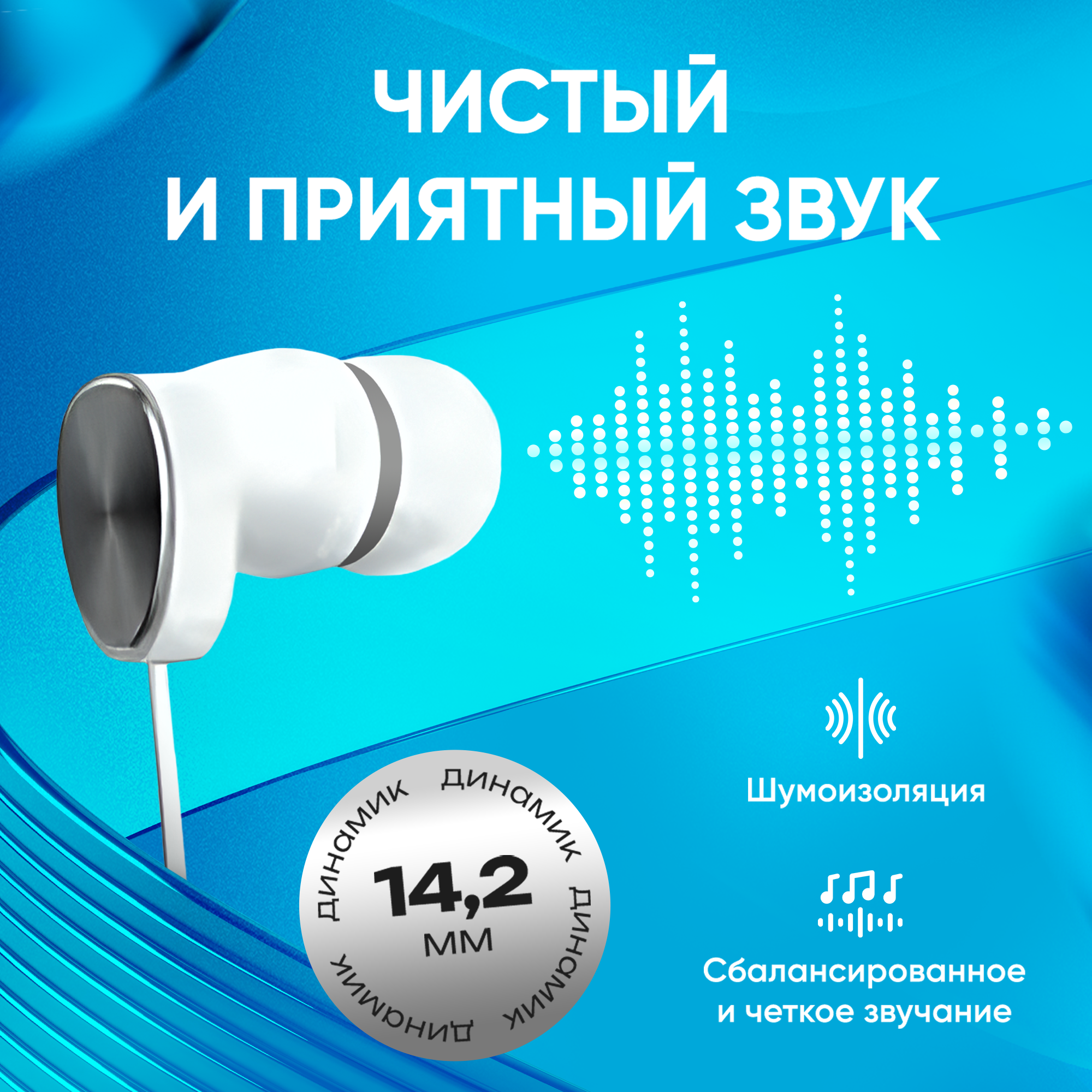 Наушники вакуумные с микрофоном проводные, 3.5мм, 1,2м, Белые, ERGOLUX промо интересное: