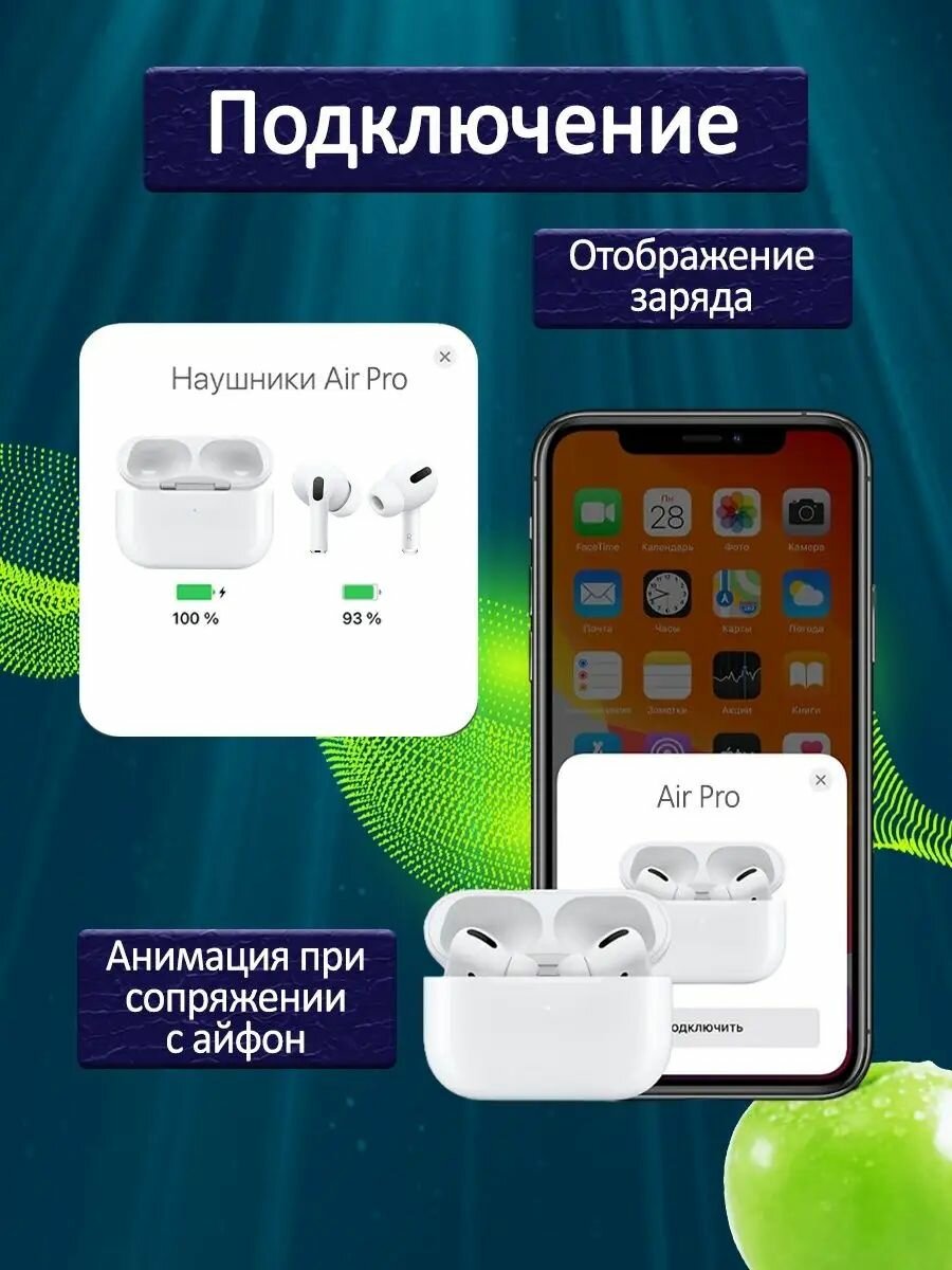 Наушники беспроводные A. Pods Pro с активным шумоподавлением и микрофоном интересное: