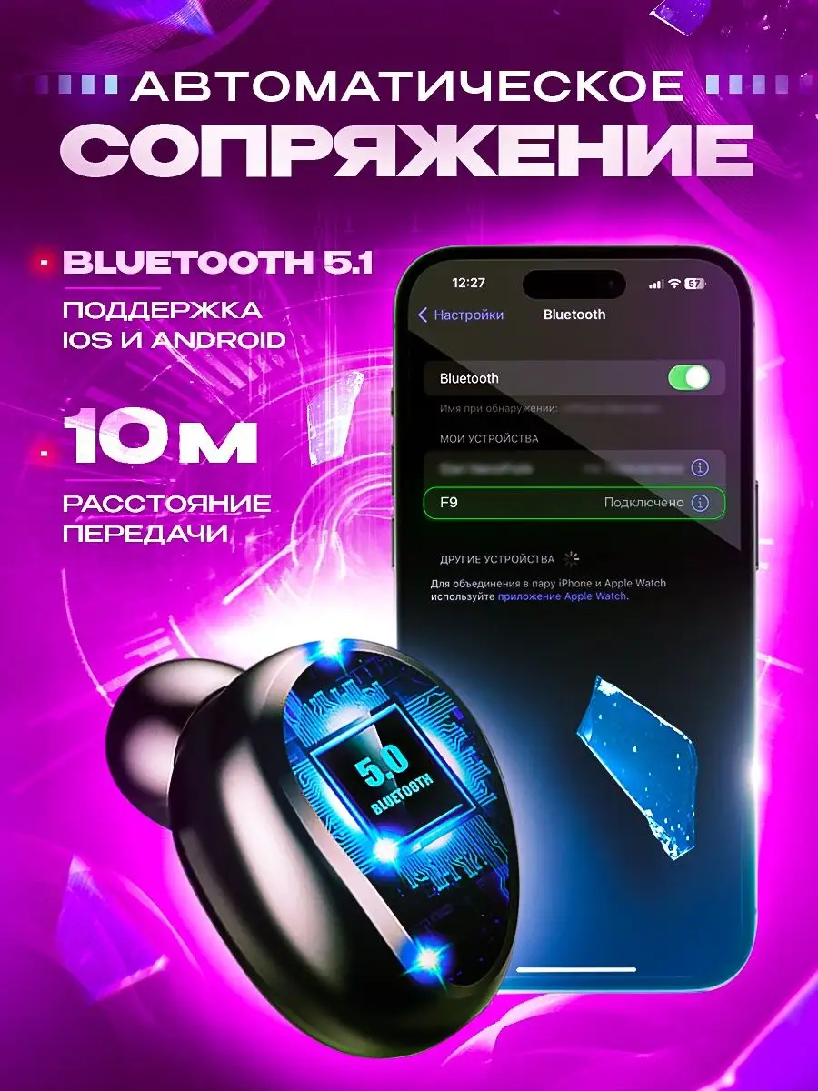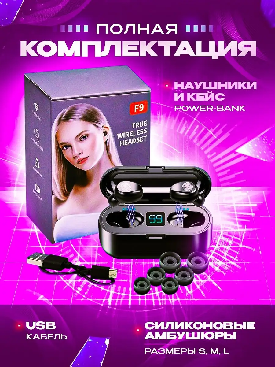 Купить Беспроводные наушники F9 Bluetooth-гарнитура для iOS Android Windows HarmonyOS MIUI черные