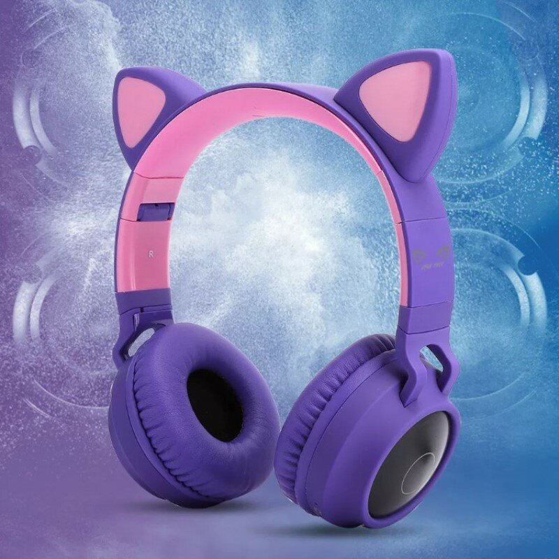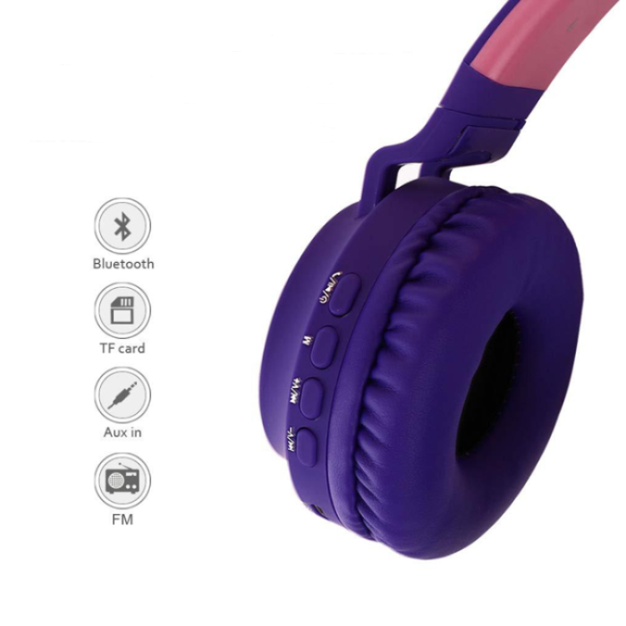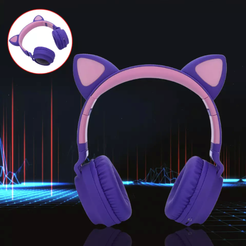 Купить YOU CAT-BT028C фиолетовые. Беспроводные наушники cat ear с ушками кошки и подсветкой.