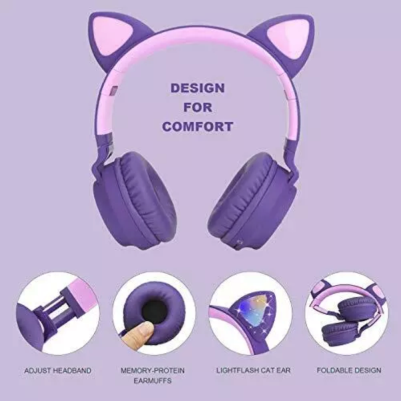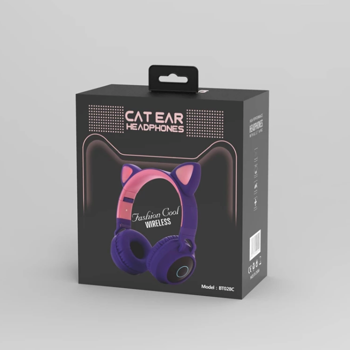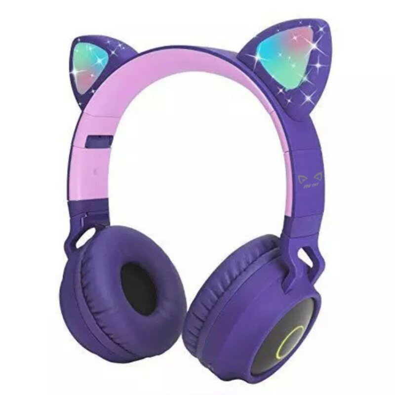 YOU CAT-BT028C фиолетовые. Беспроводные наушники cat ear с ушками кошки и подсветкой. интересное: