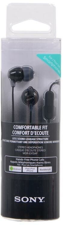 Купить Гарнитура внутриканальные Sony MDR-EX15AP 1.2м черный проводные в ушной раковине