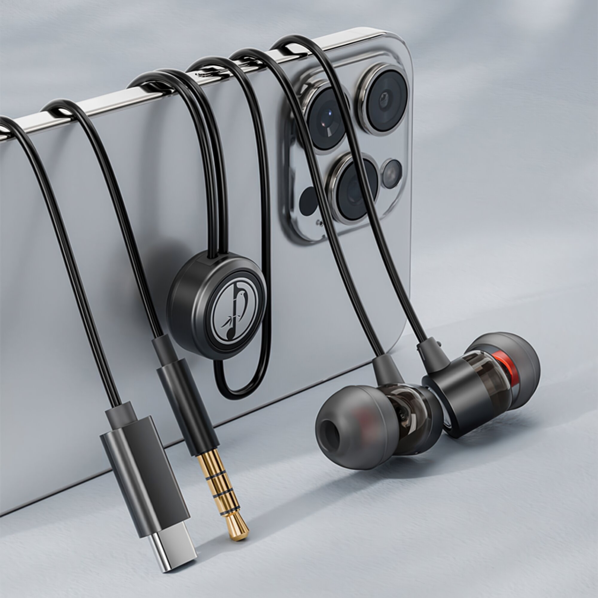 Проводные внутриканальные наушники с микрофоном BambooBird Z3, USB Type-C, черные