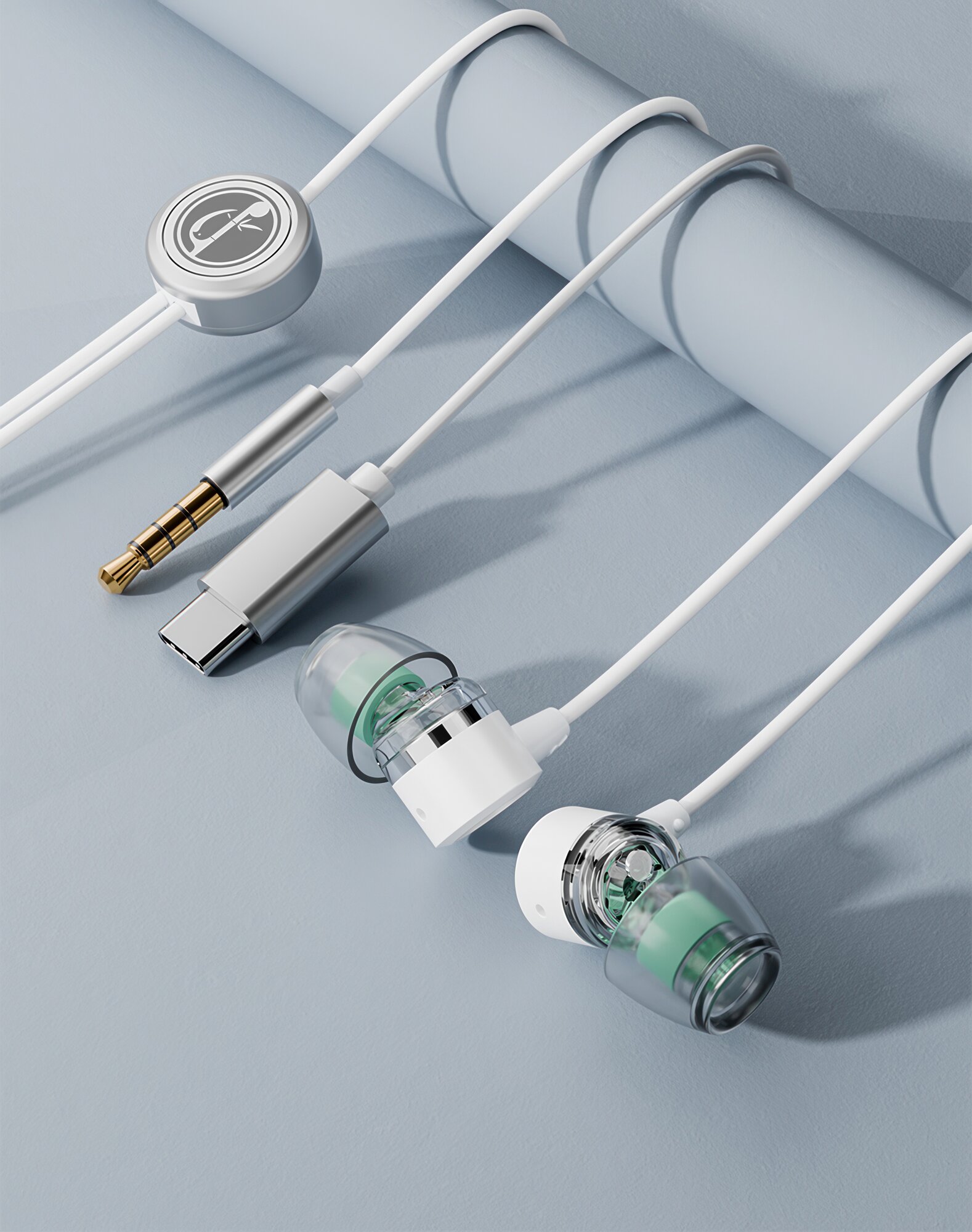 Проводные внутриканальные наушники с микрофоном BambooBird Z3, USB Type-C, белые