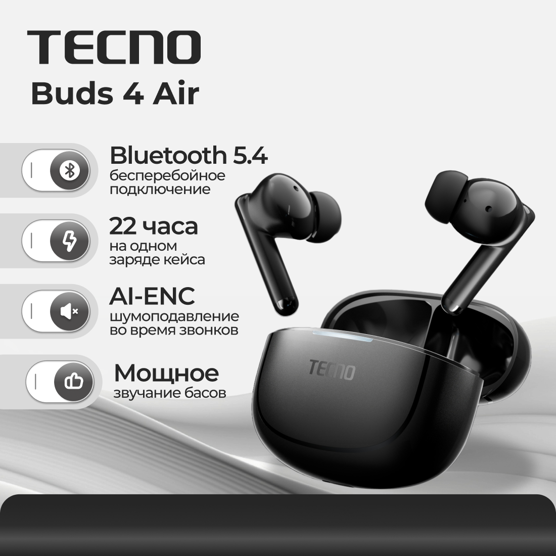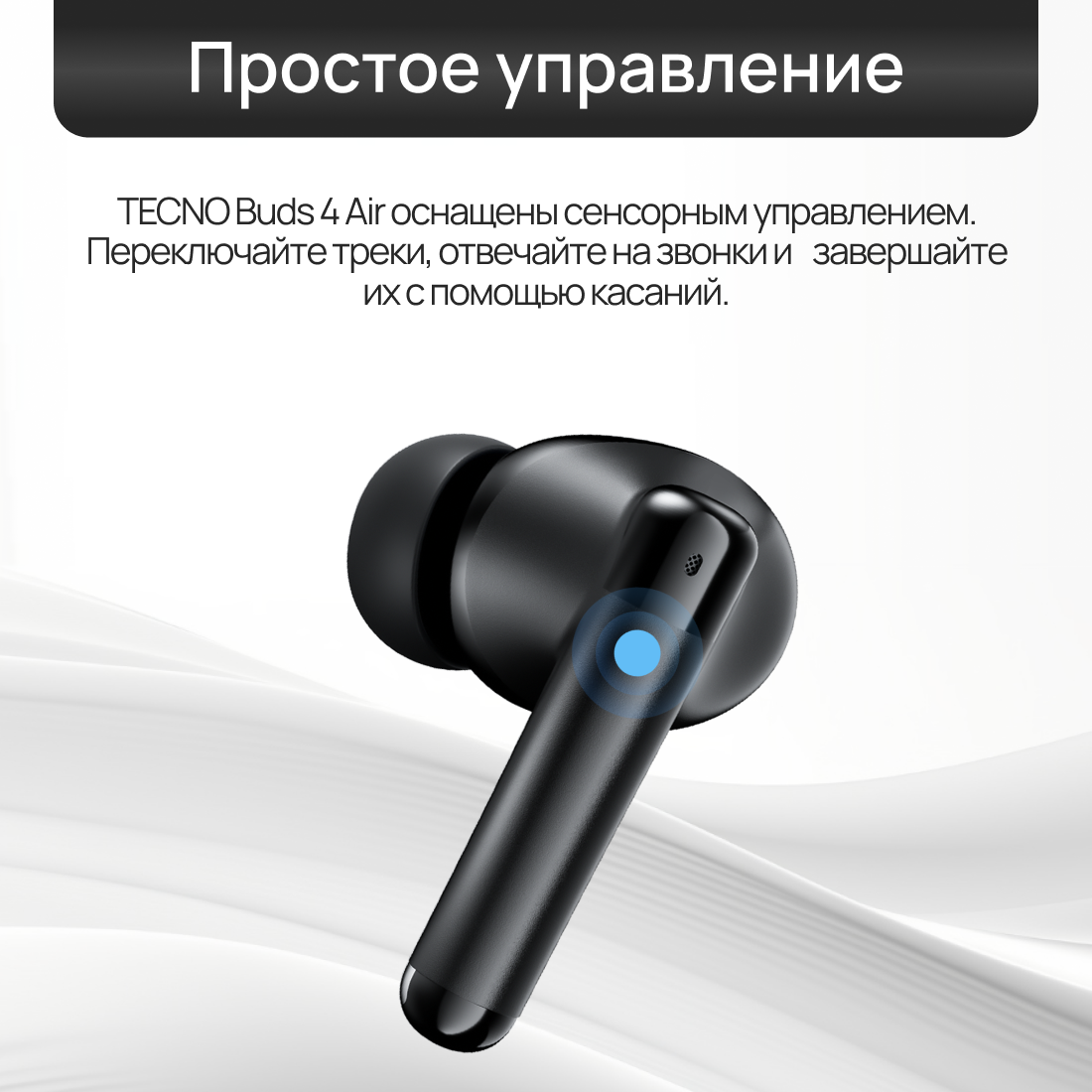 Беспроводные наушники TWS TECNO Buds 4 Air, Black интересное: